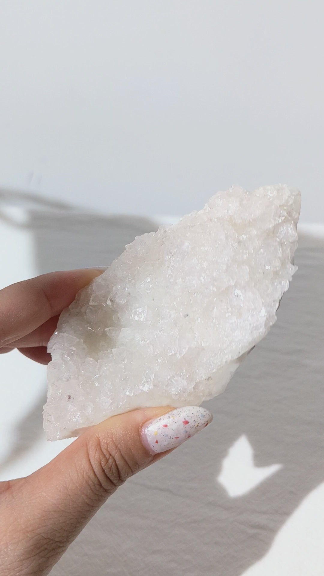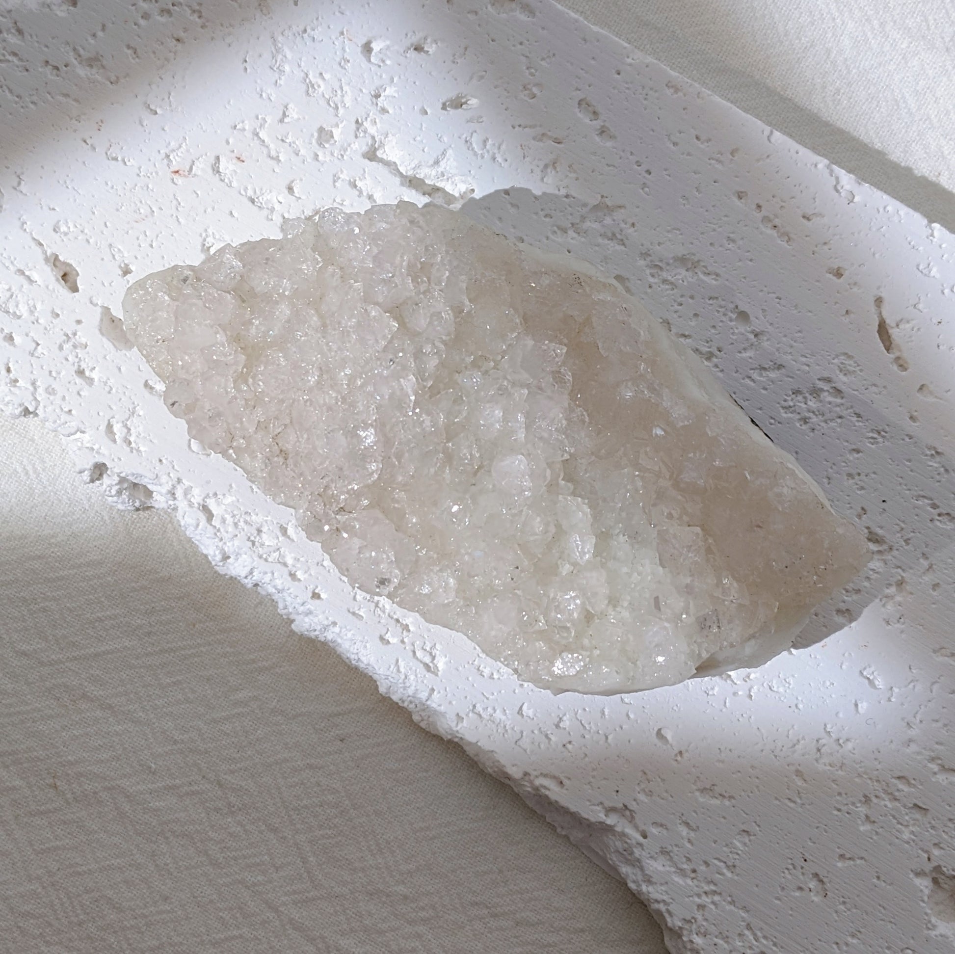 Apophyllite has high vibration that resonates with your spiritual energy, it stimulates the third eye chakra and crown chakra, and opens you up to spiritual awakening. They are commonly found in combination with stilbite, and includes little pyramids that are wonderful in transmitting energy. It's very effective on charging your crystal bracelets especially moonstone.