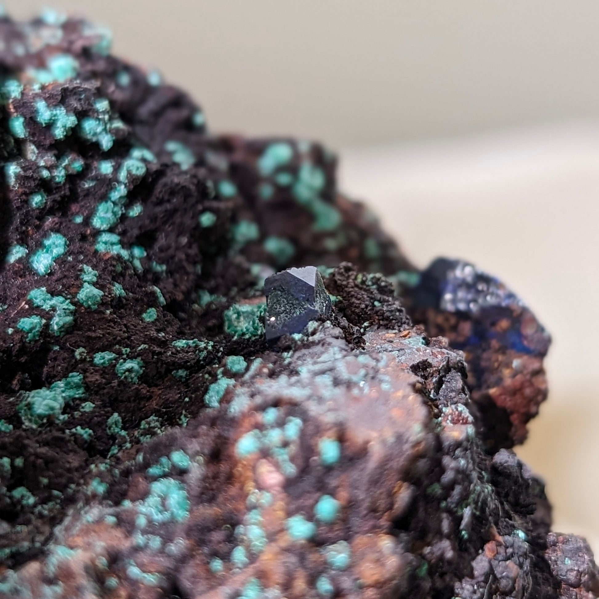 Azurite Malachite on Cuprite • 藍銅礦孔雀礦赤銅礦共生
