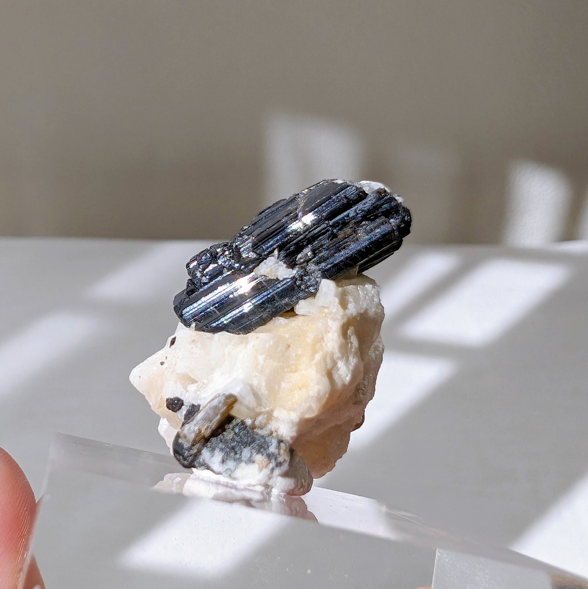 Black Tourmaline Feldspar Mica with acrylic stand • 黑碧璽長石金雲母共生 (連底座)