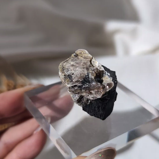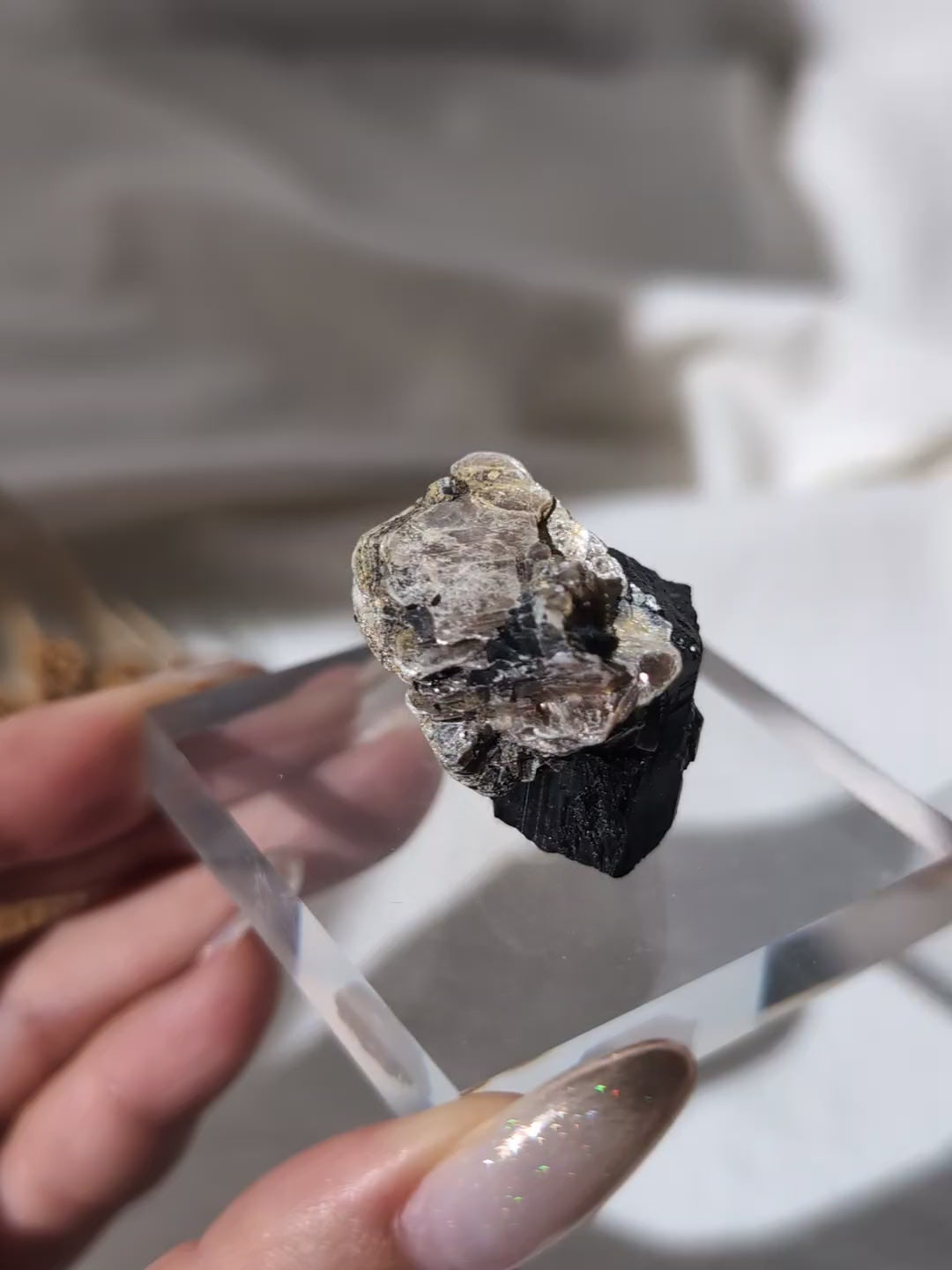 Black Tourmaline & Mica specimen with acrylic stand • 黑碧璽金雲母共生 (連底座)