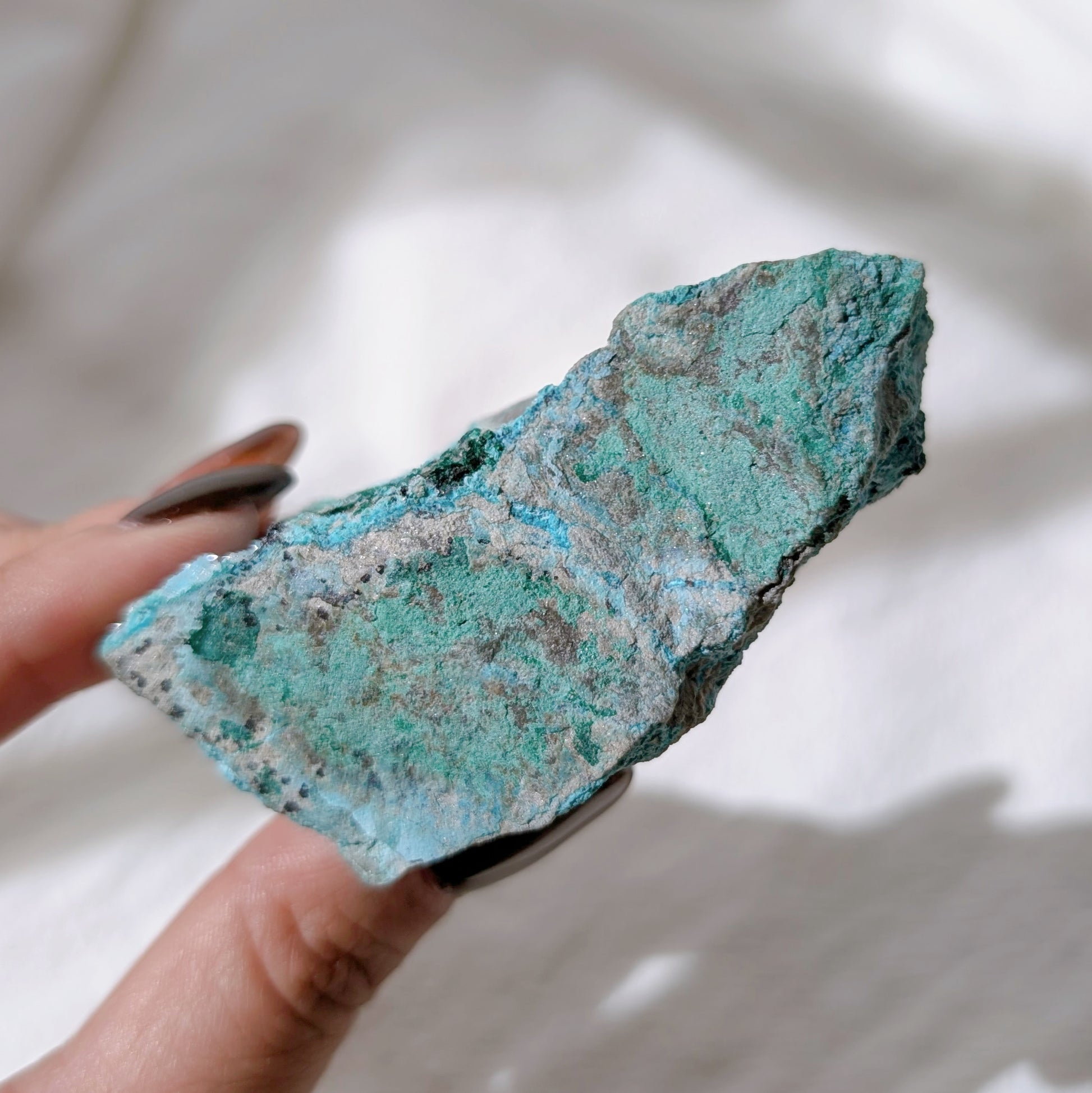 Chrysocolla is a gentle healing stone, it brings light, love and healing into our life. It helps us express our feelings, and encourages emotional balance. It flushes out and heal our emotional blockage. It sends tranquil and sustaining vibrations to us when it's worn or meditated with. It draws off all negative energies, it helps us communicate effectively with others. Chrysocolla is ideal for unstable relationship by stabilising and healing our interaction. It helps us balance our emotional challenges. It's also excellent for creative work.