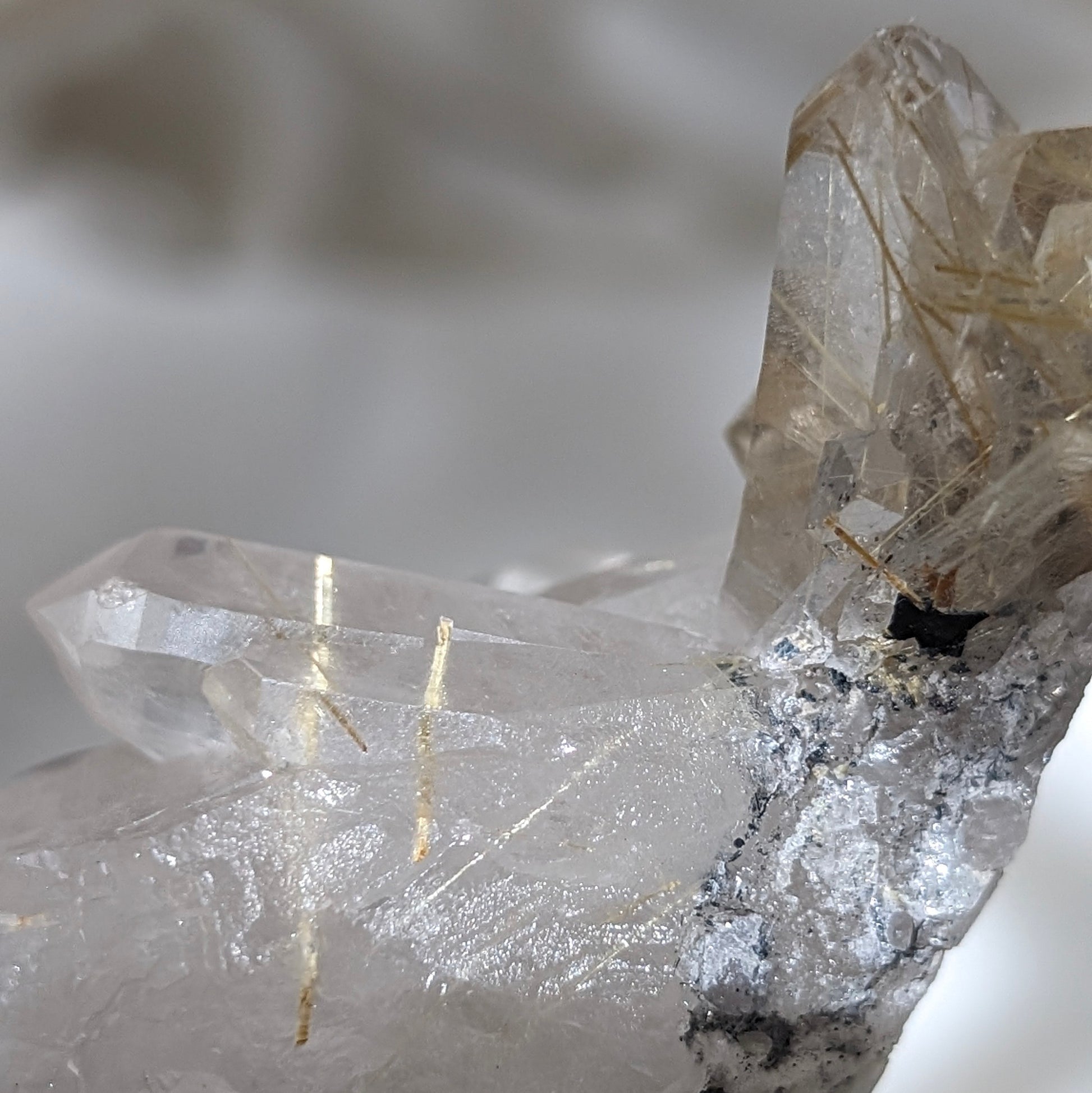 這顆長得很像一條小鯨魚,是金鈦晶的原礦,晶體很清透。