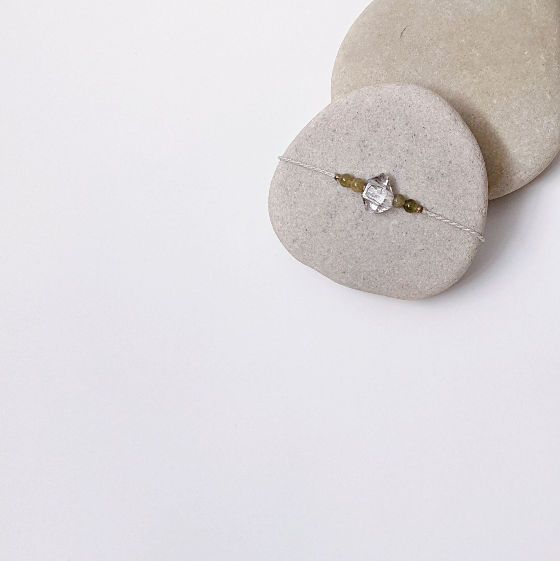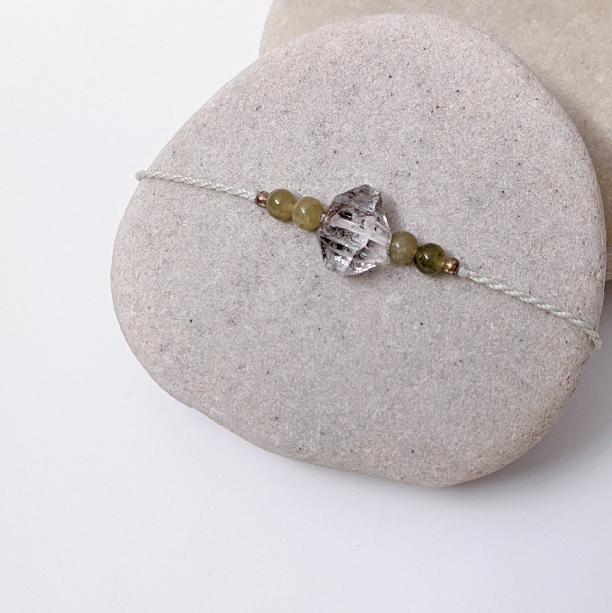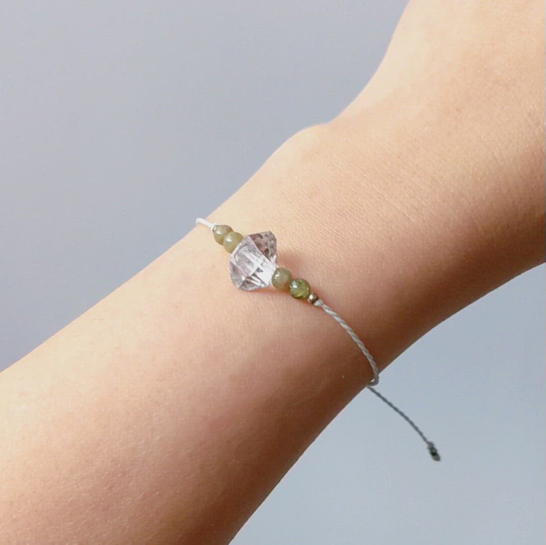 Green Tourmaline & Herkimer Diamond Bracelet 綠碧璽閃靈鑽手繩