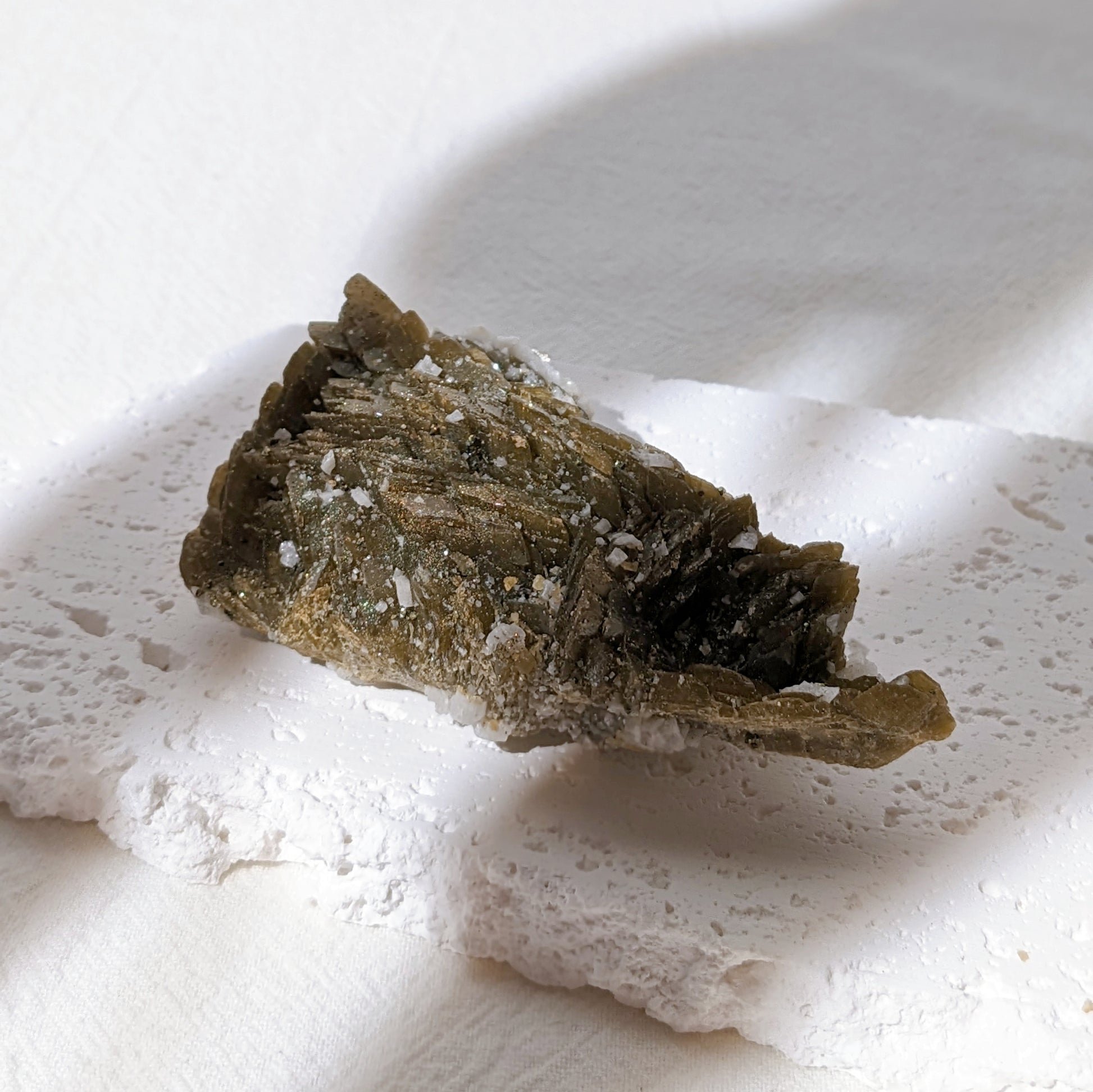 The shape of this Siderite is in very good condition, with sparkly Pyrite. Siderite is the crystal of positivity, it stimulates positive thoughts and constructive ideas. Siderite balances our chakras and it's an ideal stone for grounding and aligning.