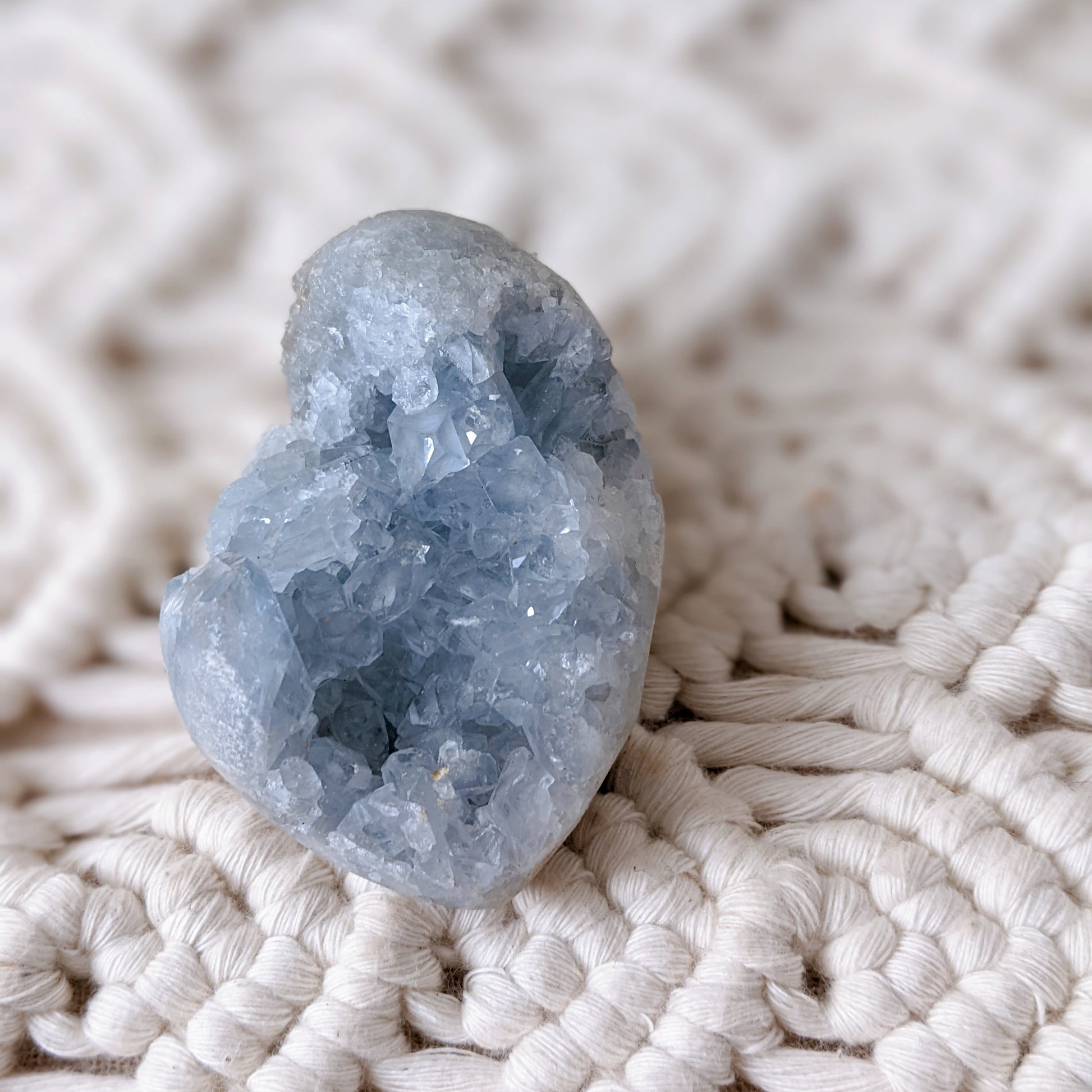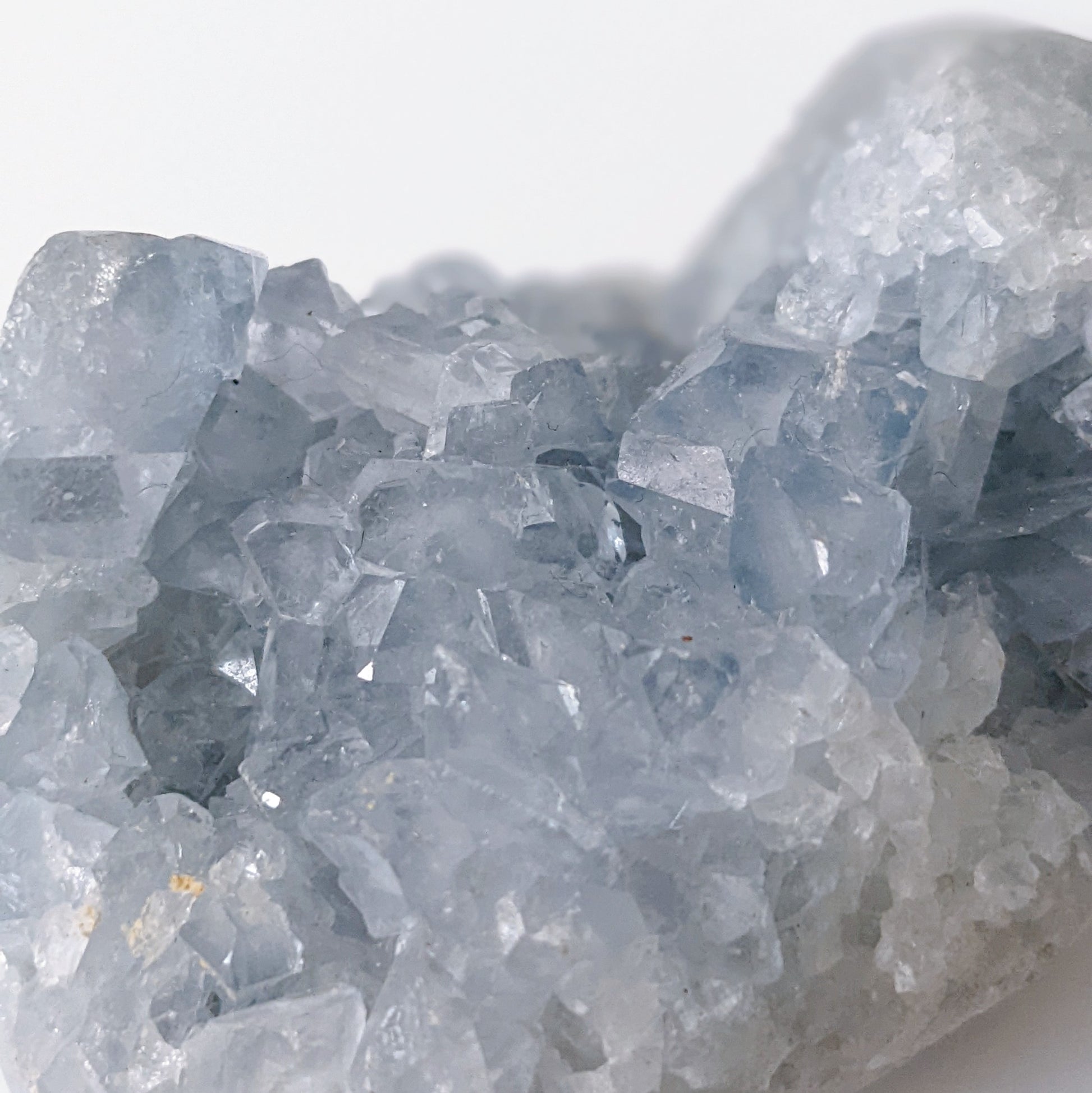 Celestite is about inner peace, quiet space, and higher spirit. It connects strongly to divine energy and cosmic supernatural forces. It assists us in spiritual healing and helps us on the path to peace. Its high vibration makes it a great crystal for chakra cleansing and grounding. It flushes out the toxins in our body and heals us from stress-related disorders. Celestite can arouse our Crown chakra to expand our vision to the farthest reaches of the universe. It also helps us to connect with the higher realms and our guardian angels.