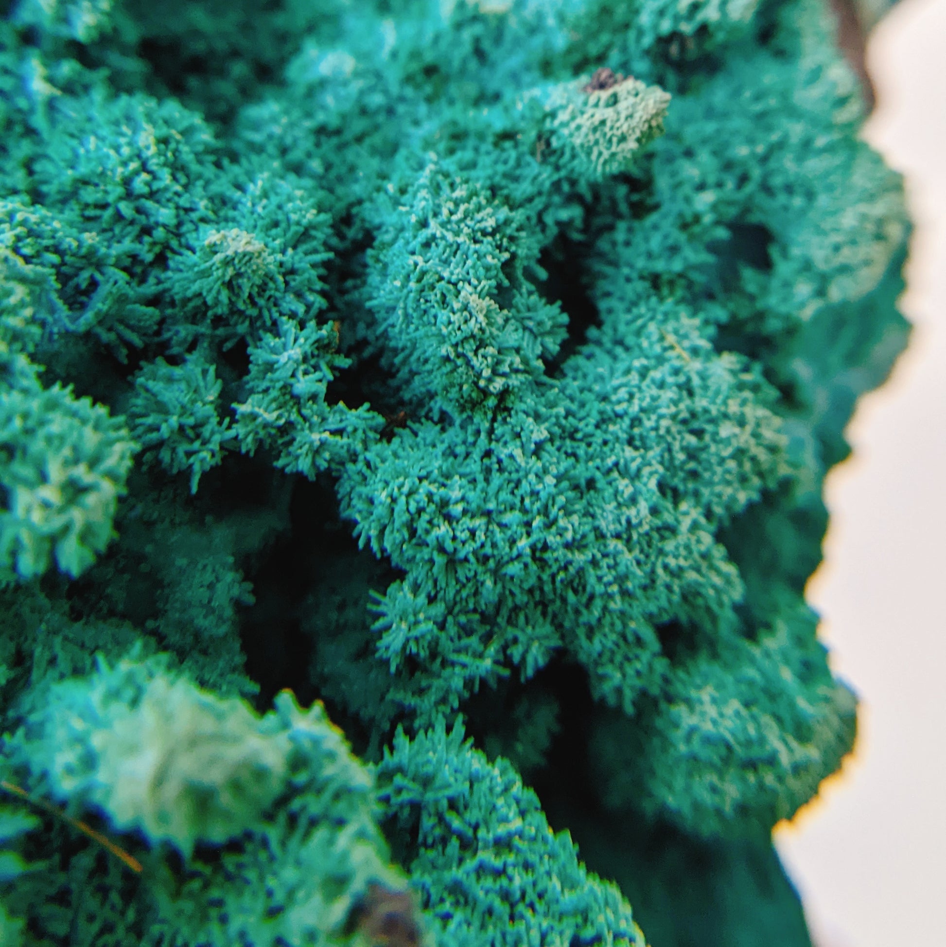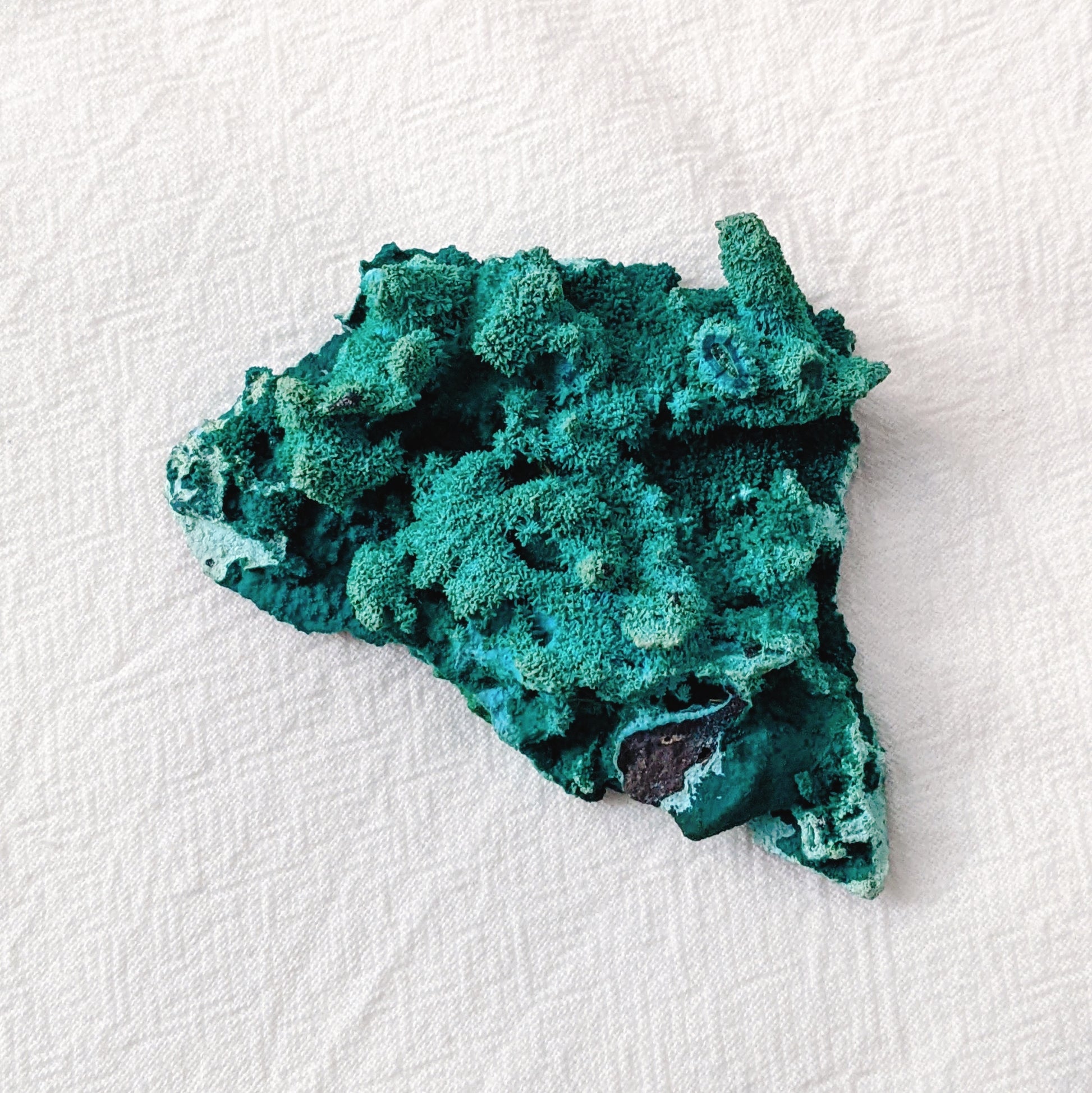 It's a rare fibrous form of Chrysocolla from Congo, making it look like a sparkly mini forest, very interesting formation.