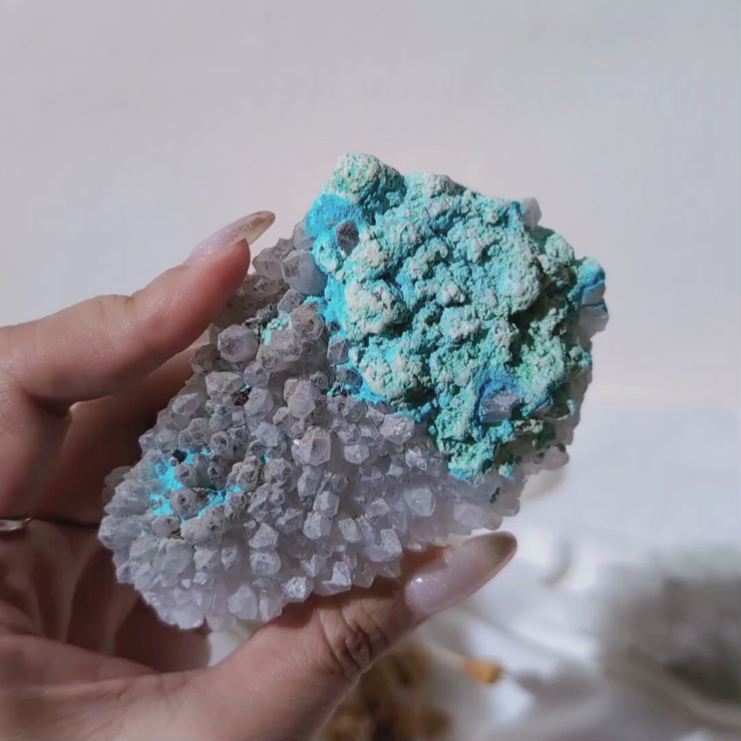 它同時平衡喉輪與心輪,是促進溝通與修補人際關係的極佳礦石;不論是與人合作、親密關係,或是自我表達,它都能為你帶來更多理解、穩定與療癒。對創作者而言,它也能啟動靈感、打開創意流動,是一顆既柔和又強大的靈性盟友。