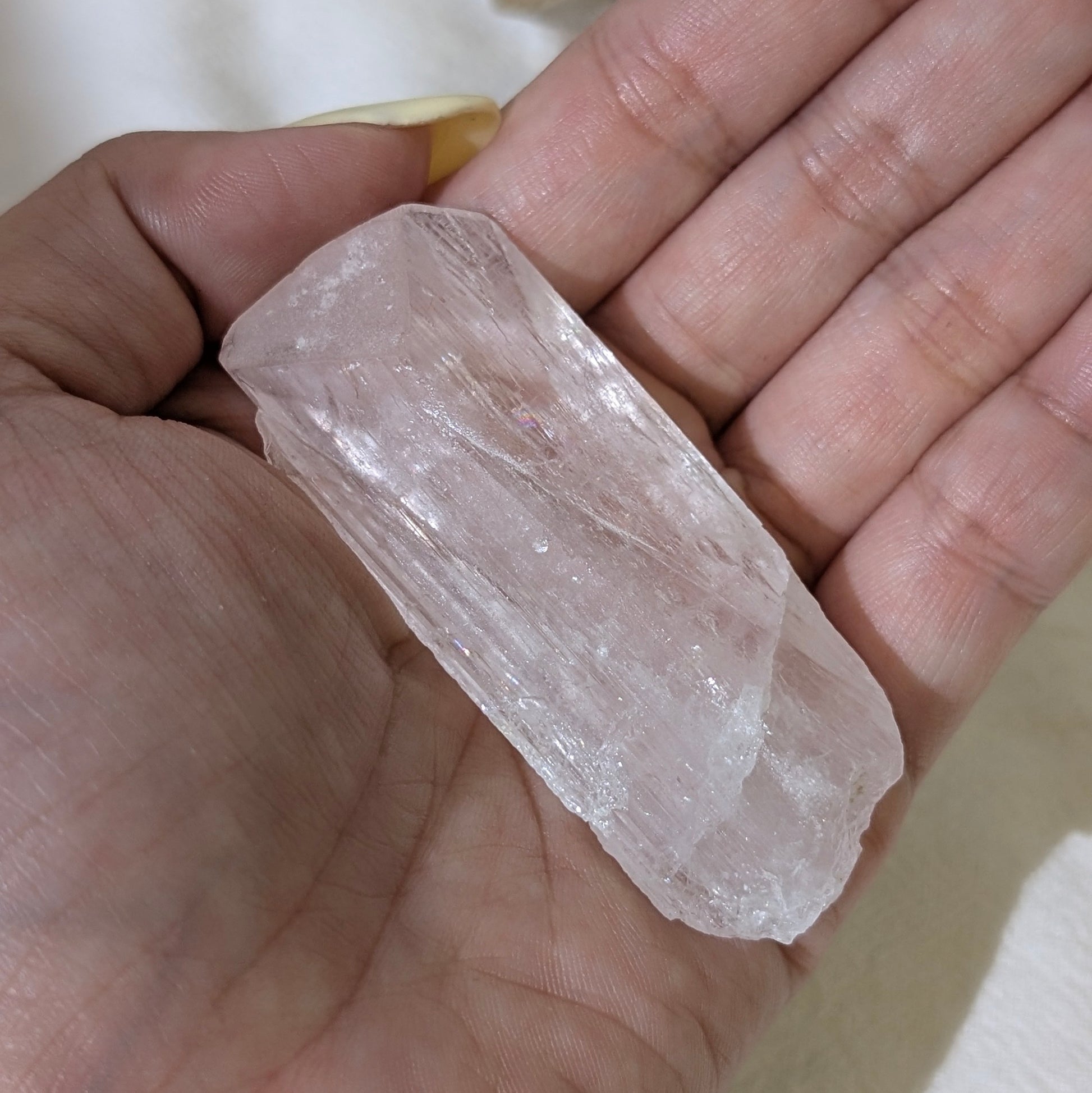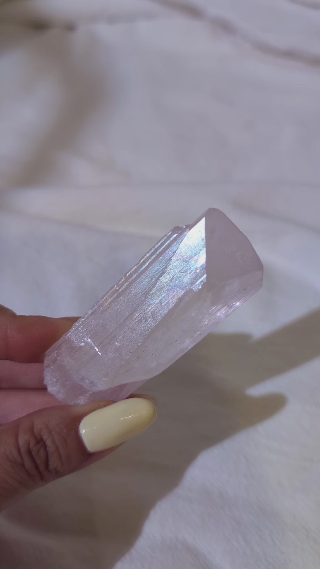 這是很少有的大晶體賽黃晶,帶彩虹🌈,這顆是手握的尺寸很適合冥想,它能幫我們打開心輪及頂輪,能讓我們連結高我,也能釋放情緒上的創傷,是很溫柔強大的礦石。