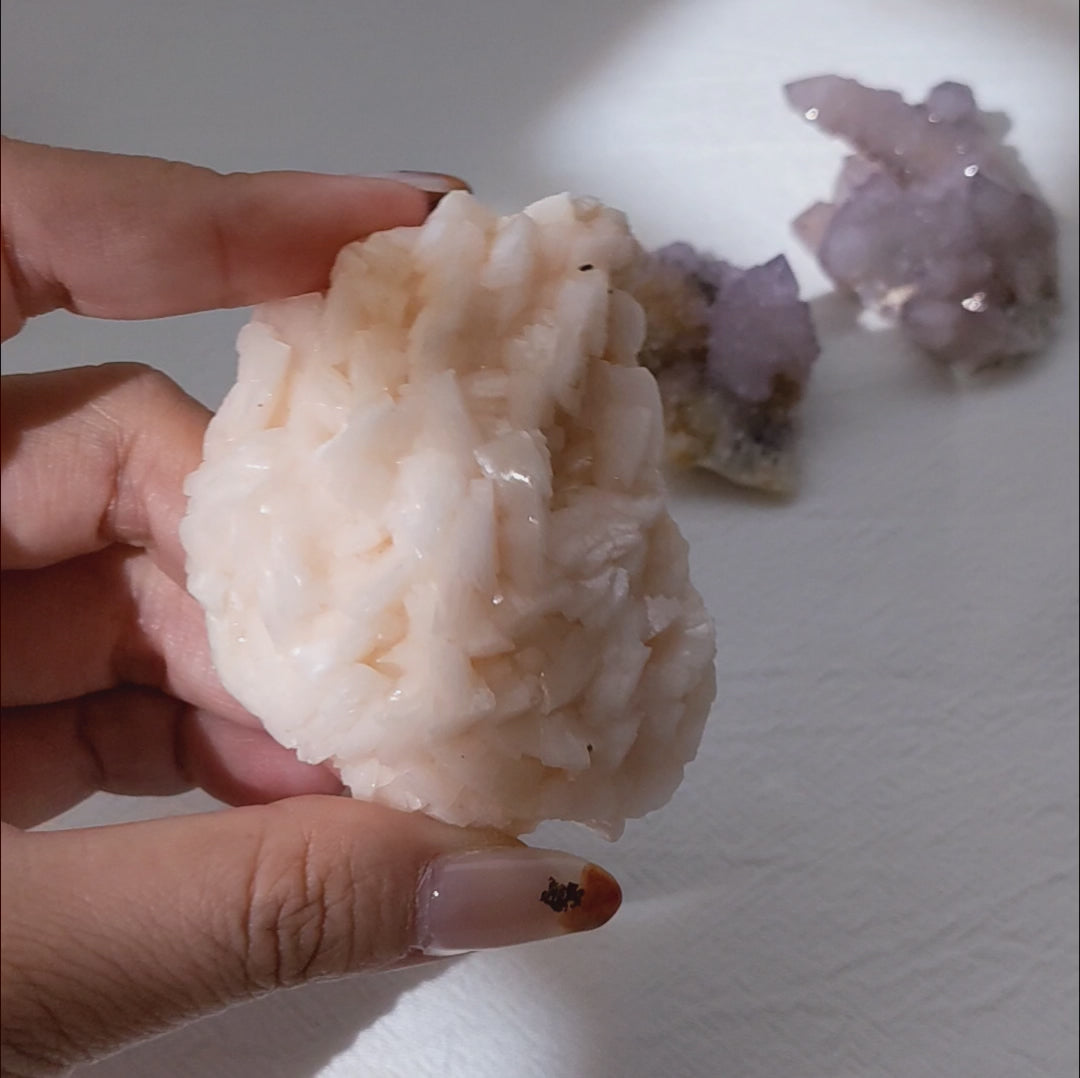 Dolomite is a very protective stone, it can be placed in the center of a space to balance and ground its energy. It also helps with insomnia, nightmares, irregular sleep patterns. It's a stone of comfort and ease, it balances our emotions and brings optimism. It opens and activates our heart chakra to bring love into our life.