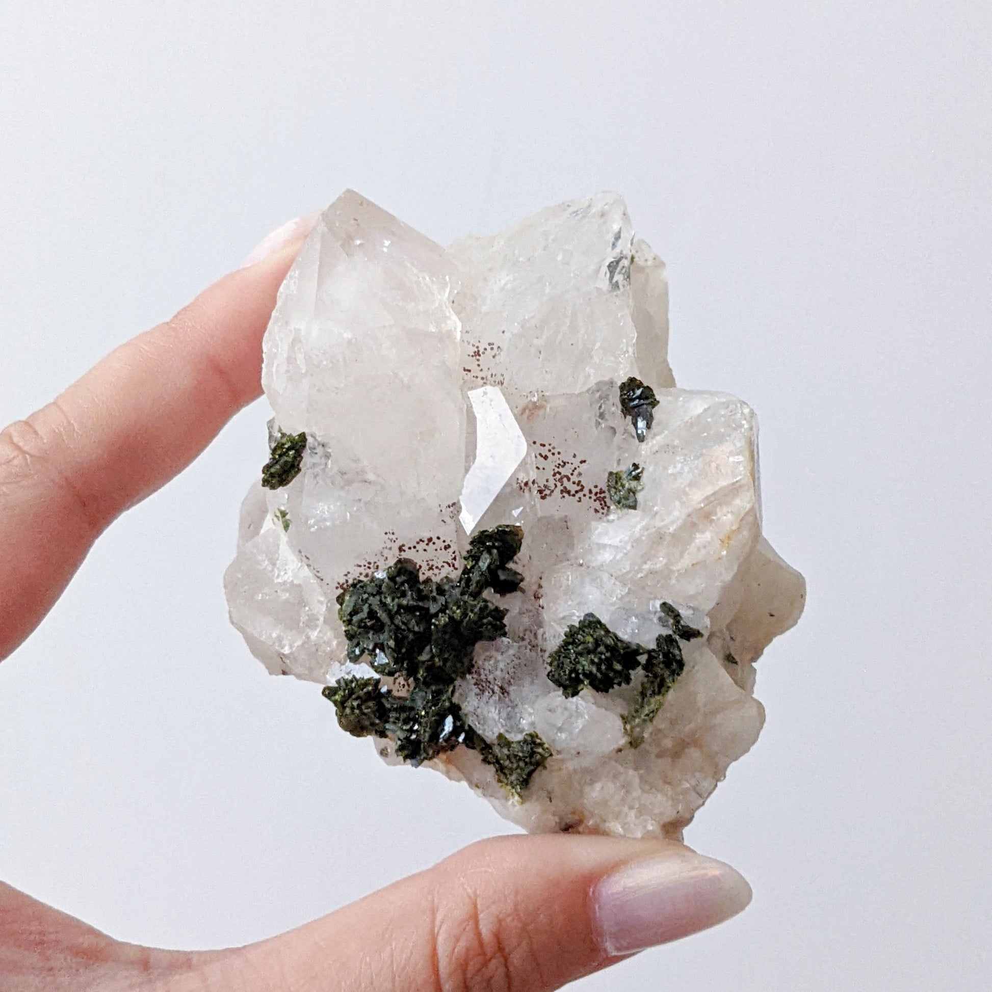Epidote with Clear Quartz and Hematite • 綠簾石水晶赤鐵礦共生 (花園水晶)