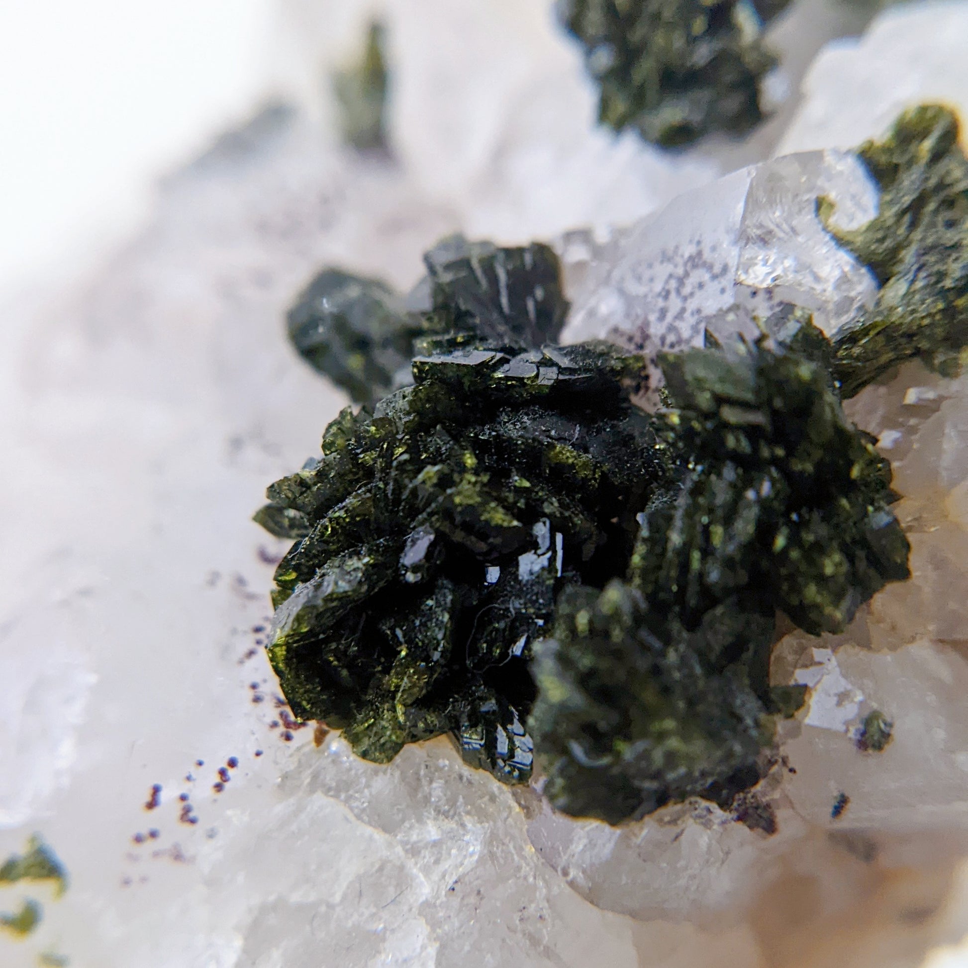 Epidote belongs to the Epidote group of minerals which is formed by calcium aluminium iron silicate hydroxide. It can increase our energy levels and it can strengthen our physical body. It's helpful for stamina, the nervous and immune system. It helps us reduce self criticism, and teaches us to set goals. It assists us to overcome our failures, and releases old patterns of negativity. It encourages optimism, and clears blockages in our physical body. It brings spiritual growth, and raises our vibrations.