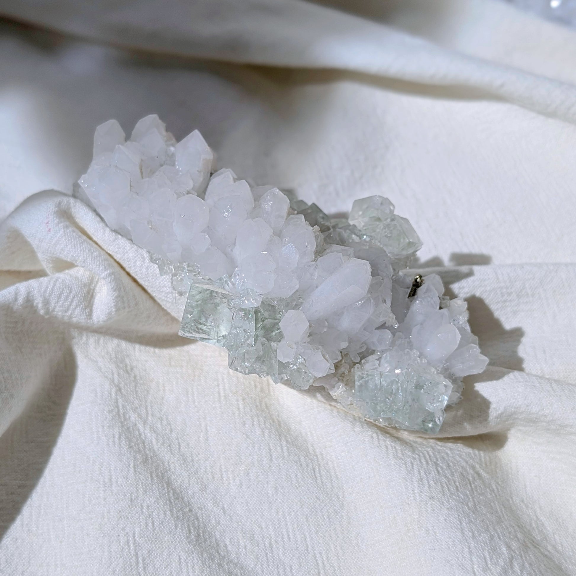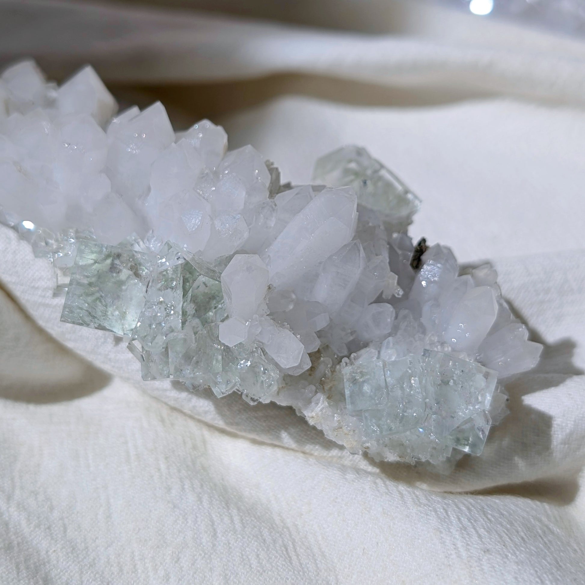 Fluorite is one of the popular collectible in the crystal world, it's loved by mineralogists and spiritual healers. It's luminous and glassy, and appears in various colors. Fluorite carries a calm and stable frequency to settle chaos and scattered energies into harmony. It cleanses and stabilises the aura, it absorbs and neutralises negative energy and stress. It's a stone of trust, conscience, intuition, cleanliness, luck and love. It boosts the immune system, particularly in the skin and respiratory tract, and it soothes other nerve-related pain. Blue Fluorite calms our emotions and assists us in clear communication. It helps our spiritual awakening as it stimulates our Third Eye chakra. It improves our intuition and creativity.