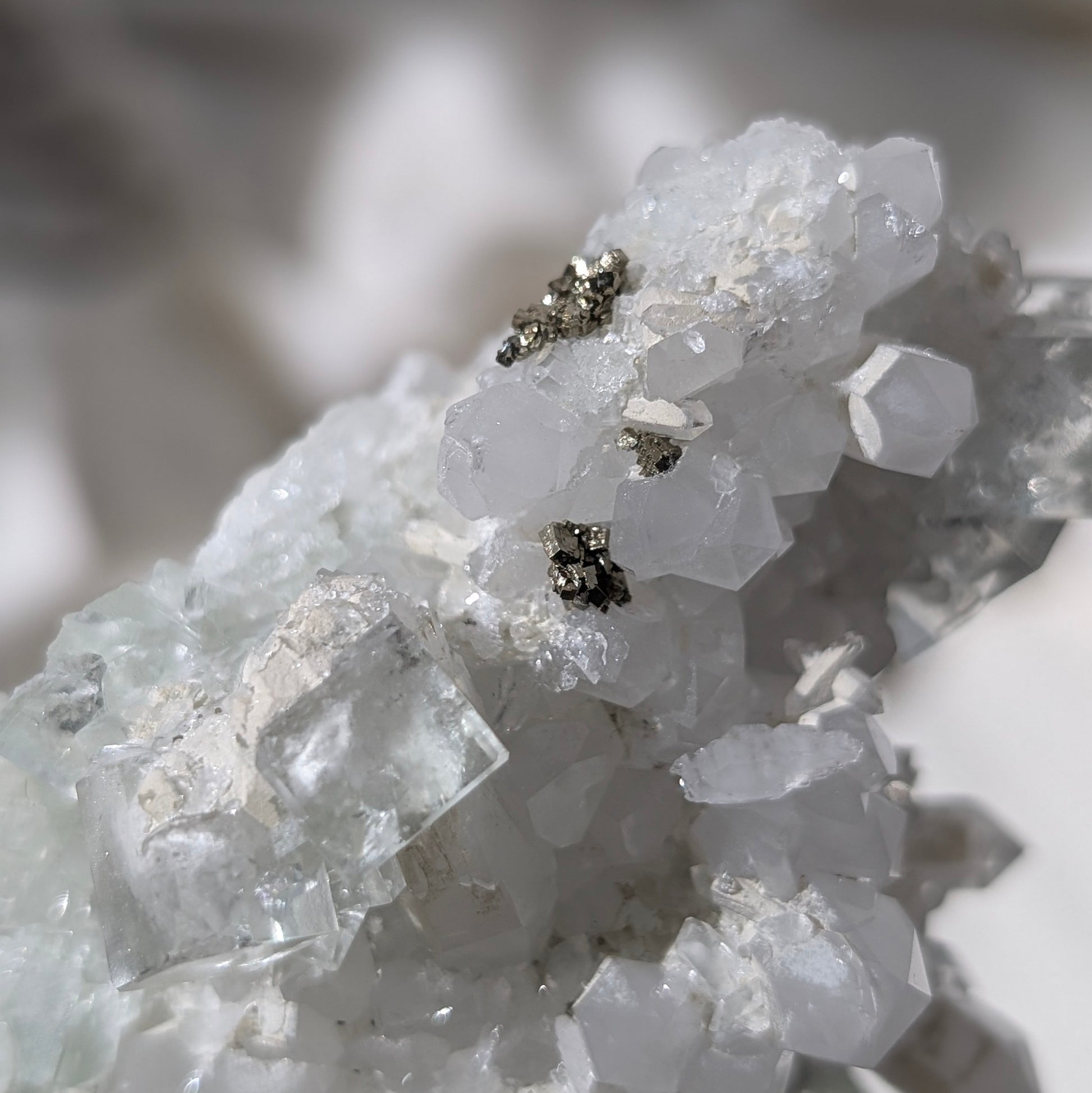 Green Glass Fluorite with Quartz and Pyrite • 香花嶺玻璃體綠螢石黃鐵礦白水晶共生