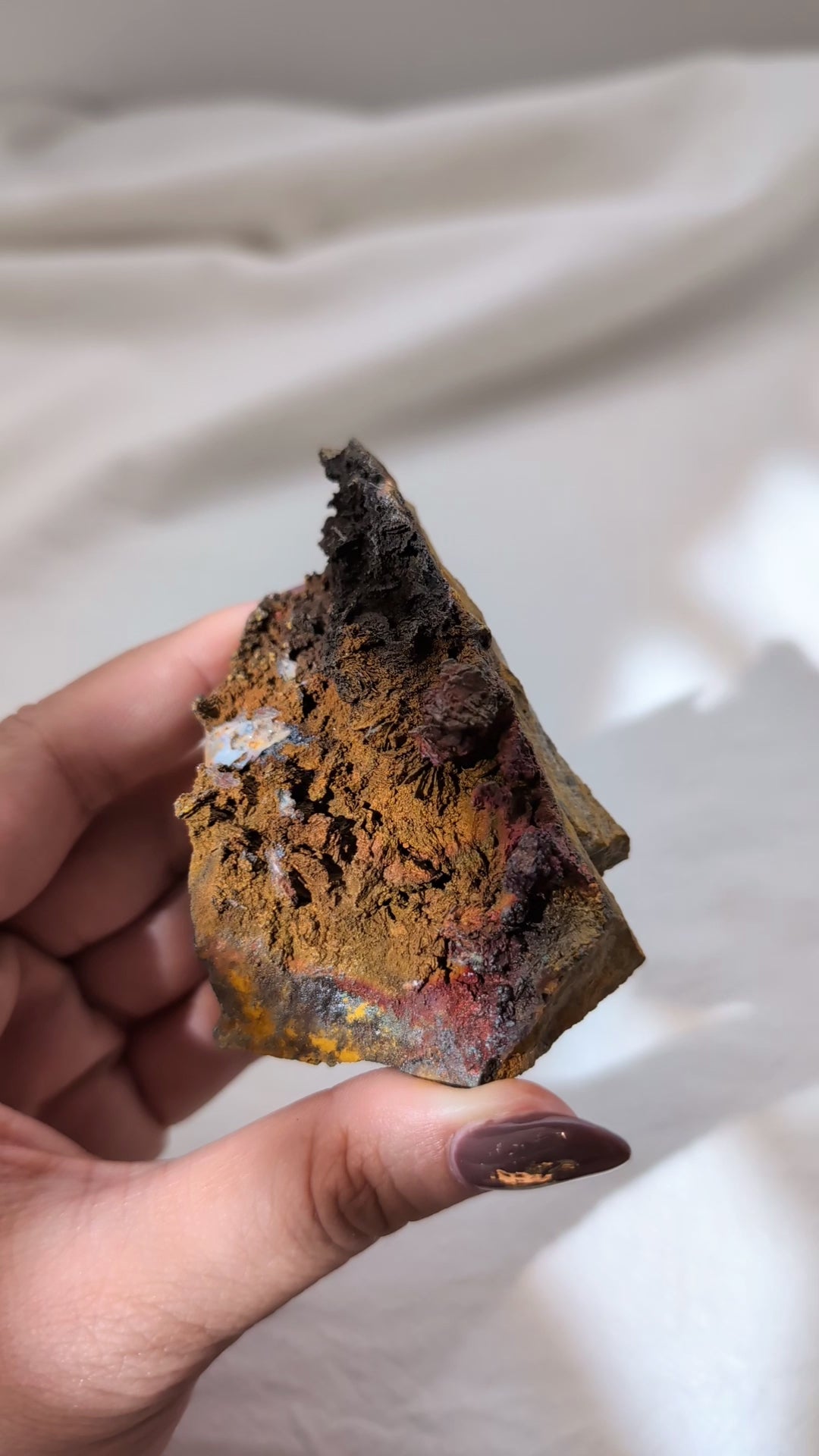 This piece carries the energy of grounding and release. Goethite steadies your spirit, Barite lifts your vision to connect with the higher realm, and Calcite soothes the heart—together reminding you that even within the heaviest shadow, there are secret rainbows waiting to be discovered.