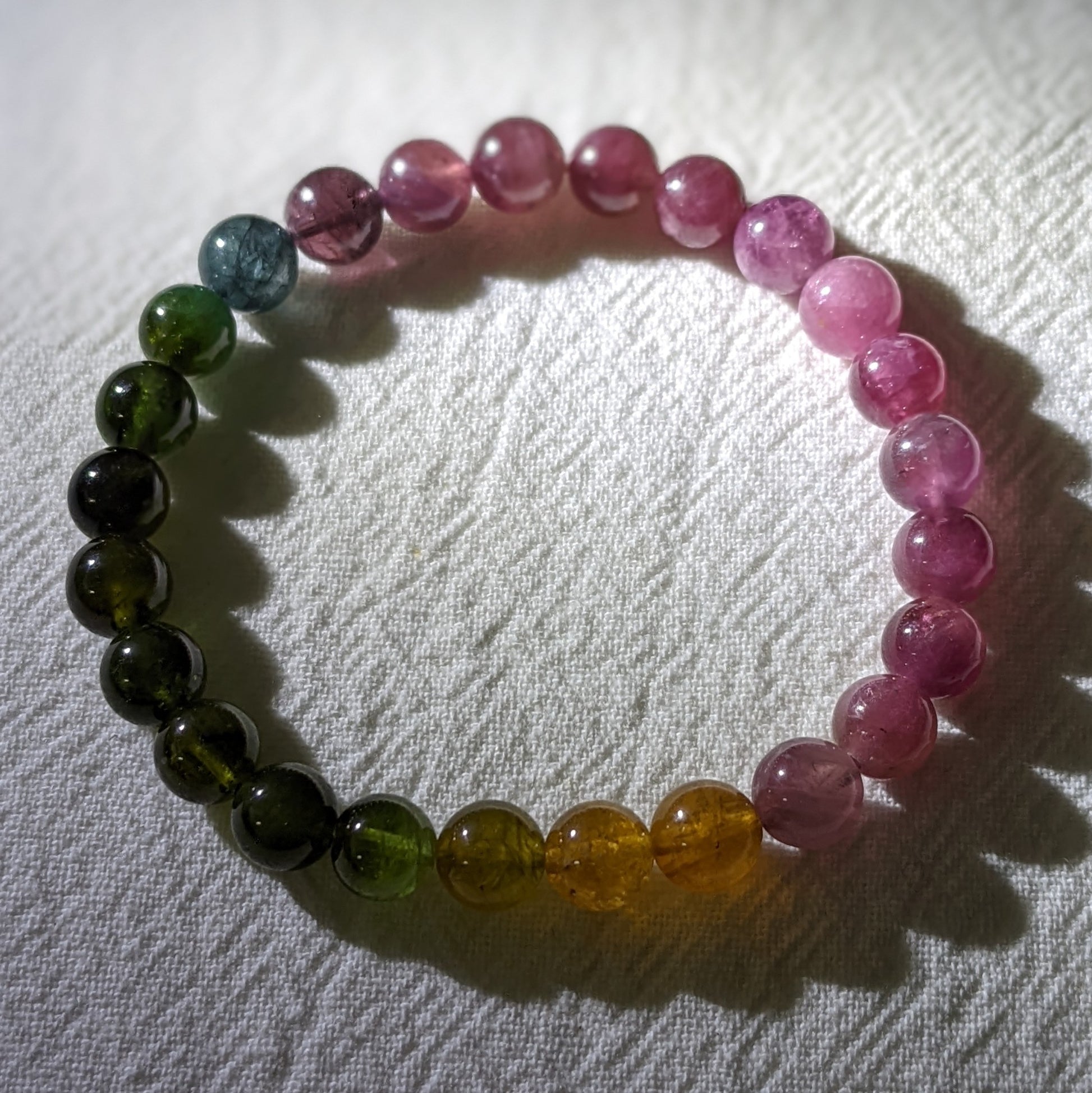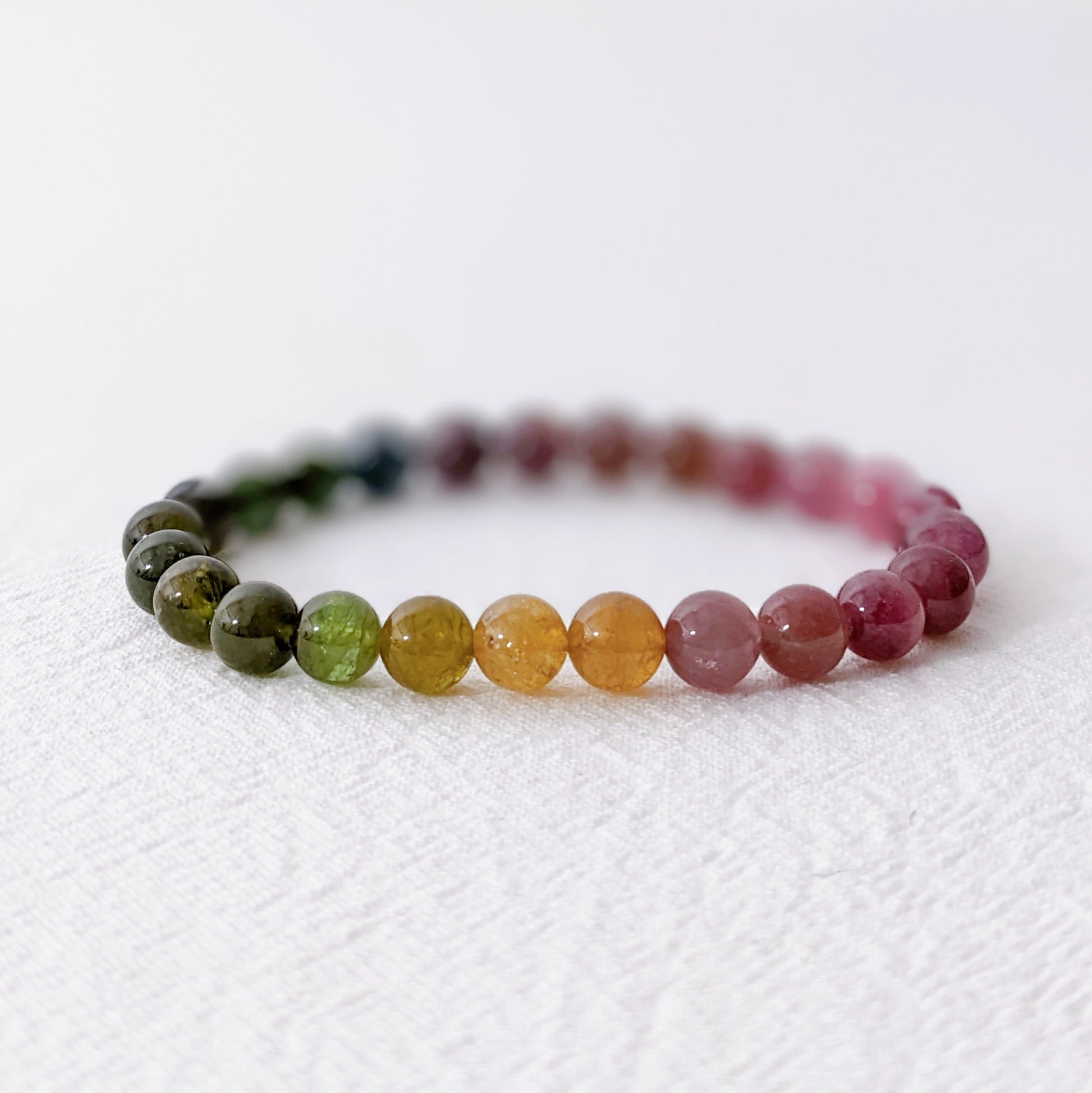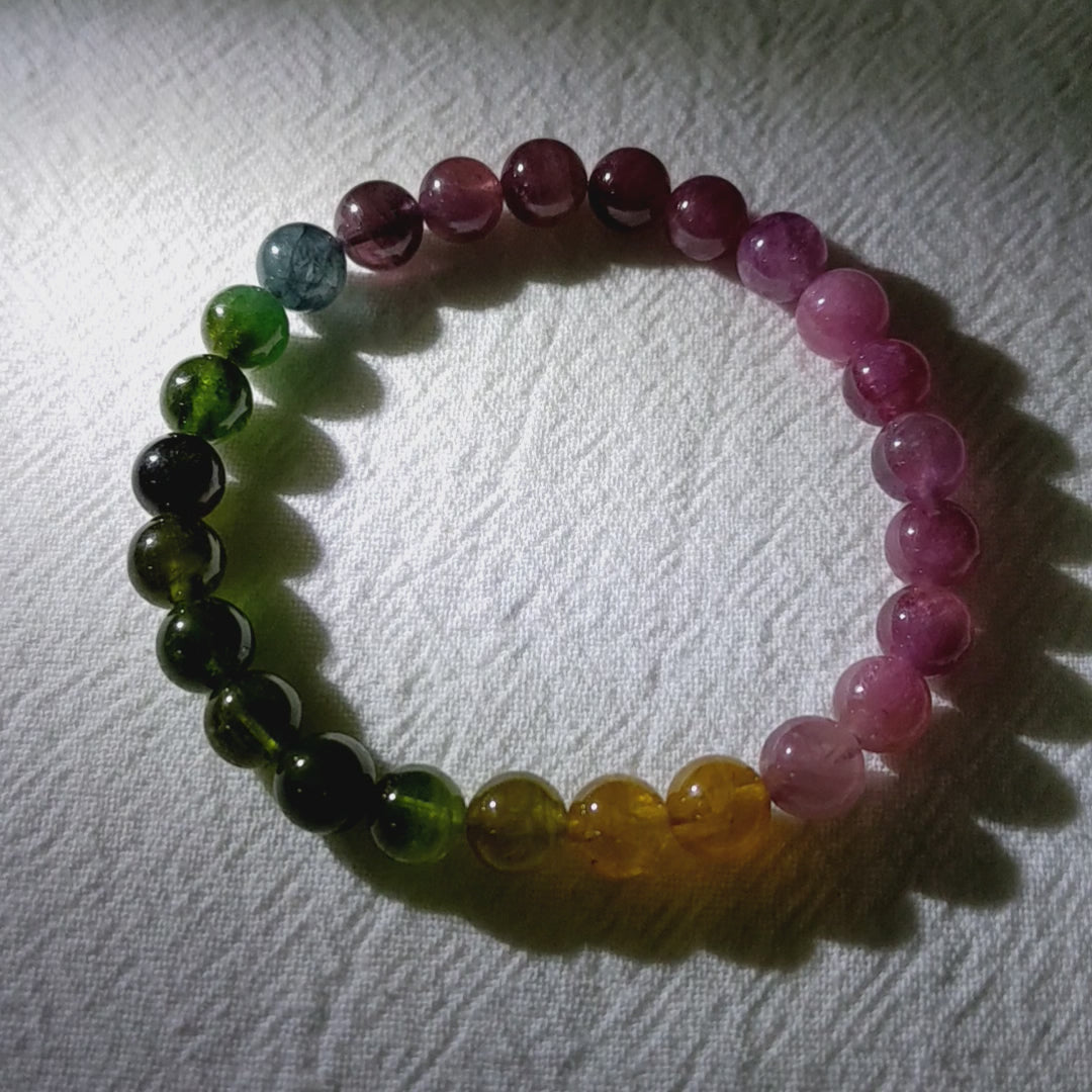 High Grade Rainbow Tourmaline Beaded Bracelet • 高品彩碧手串