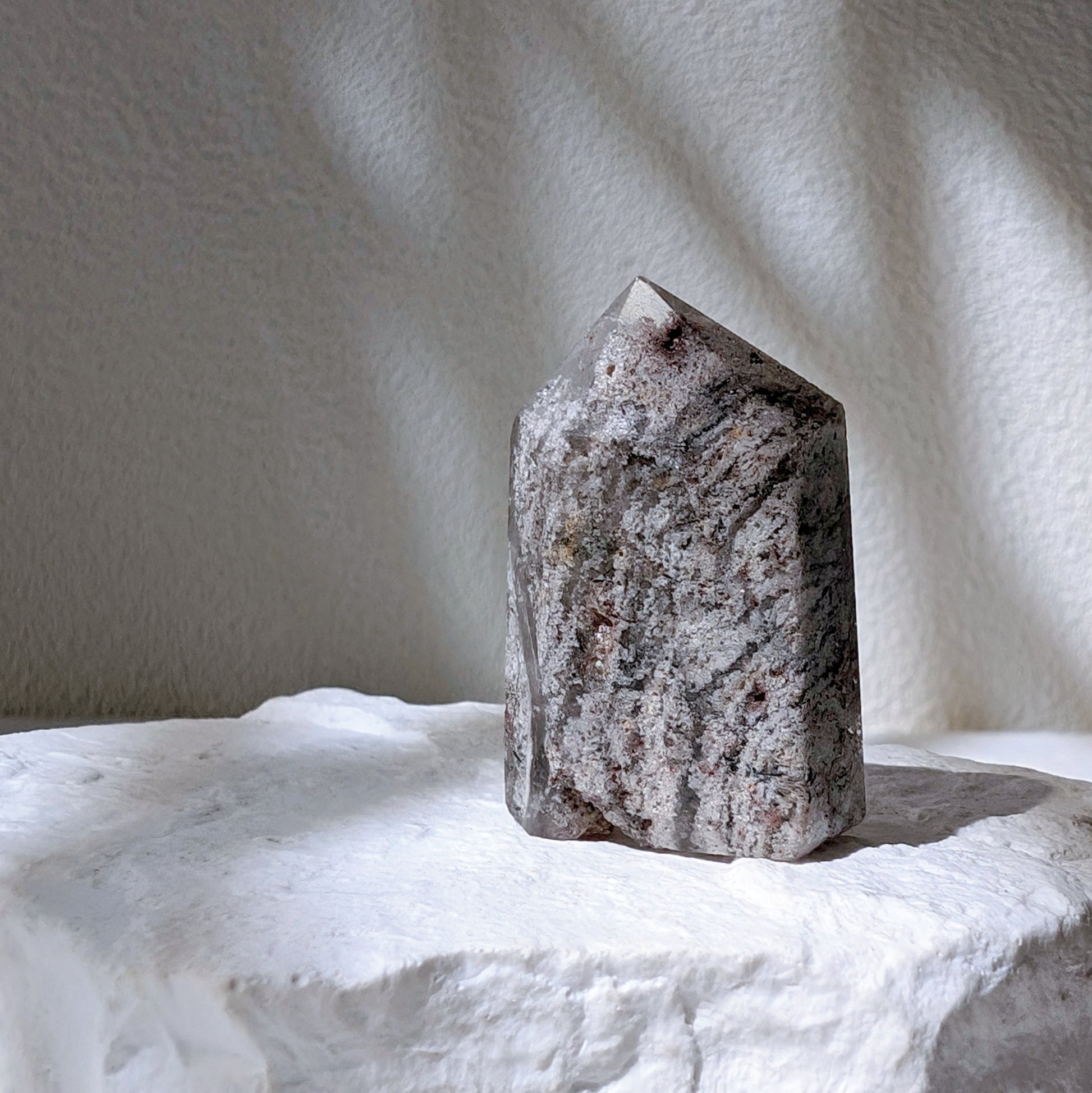 Clear Quartz with Lodolite mini obelisk • 白幽靈水晶小柱