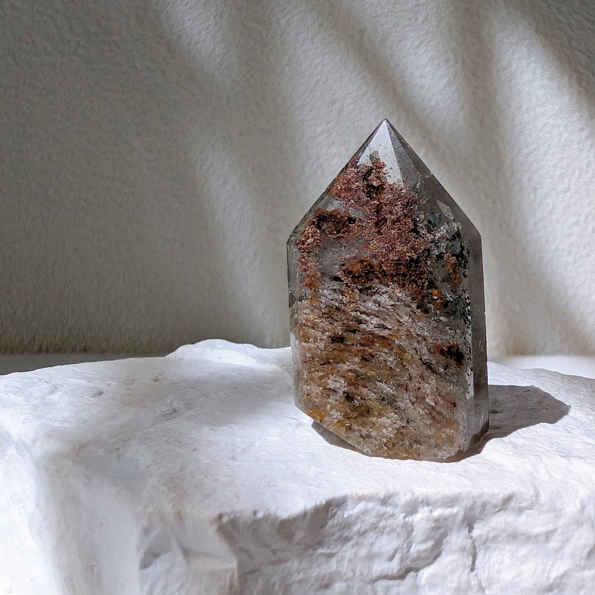 Clear Quartz with Lodolite mini obelisk • 彩幽靈水晶小柱