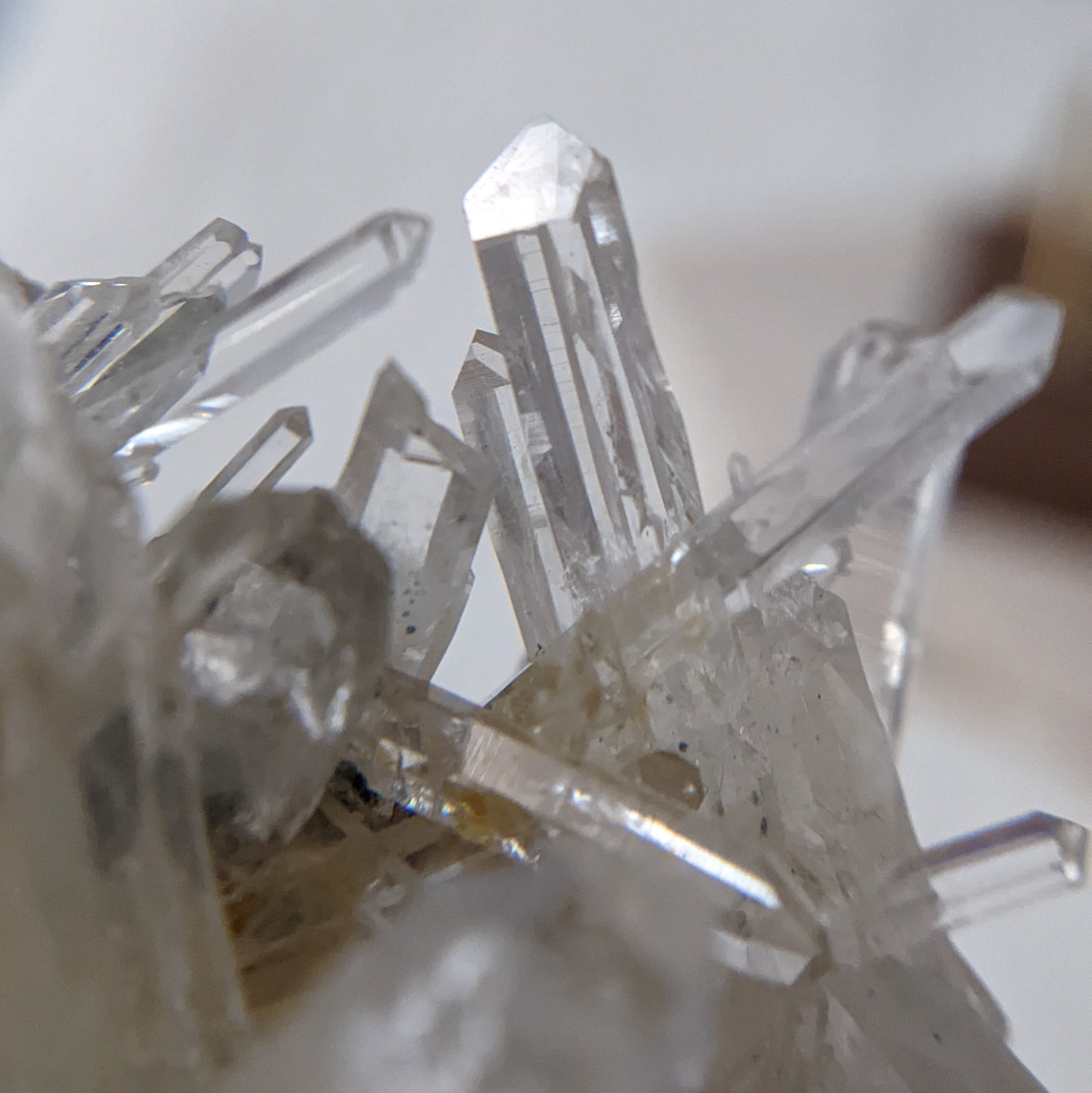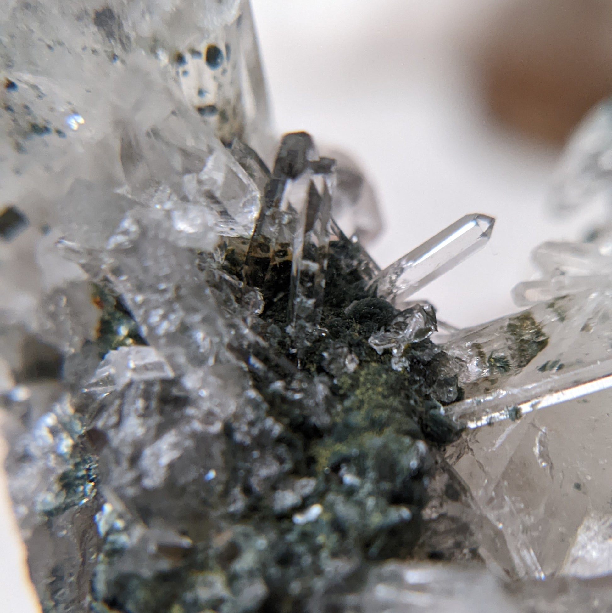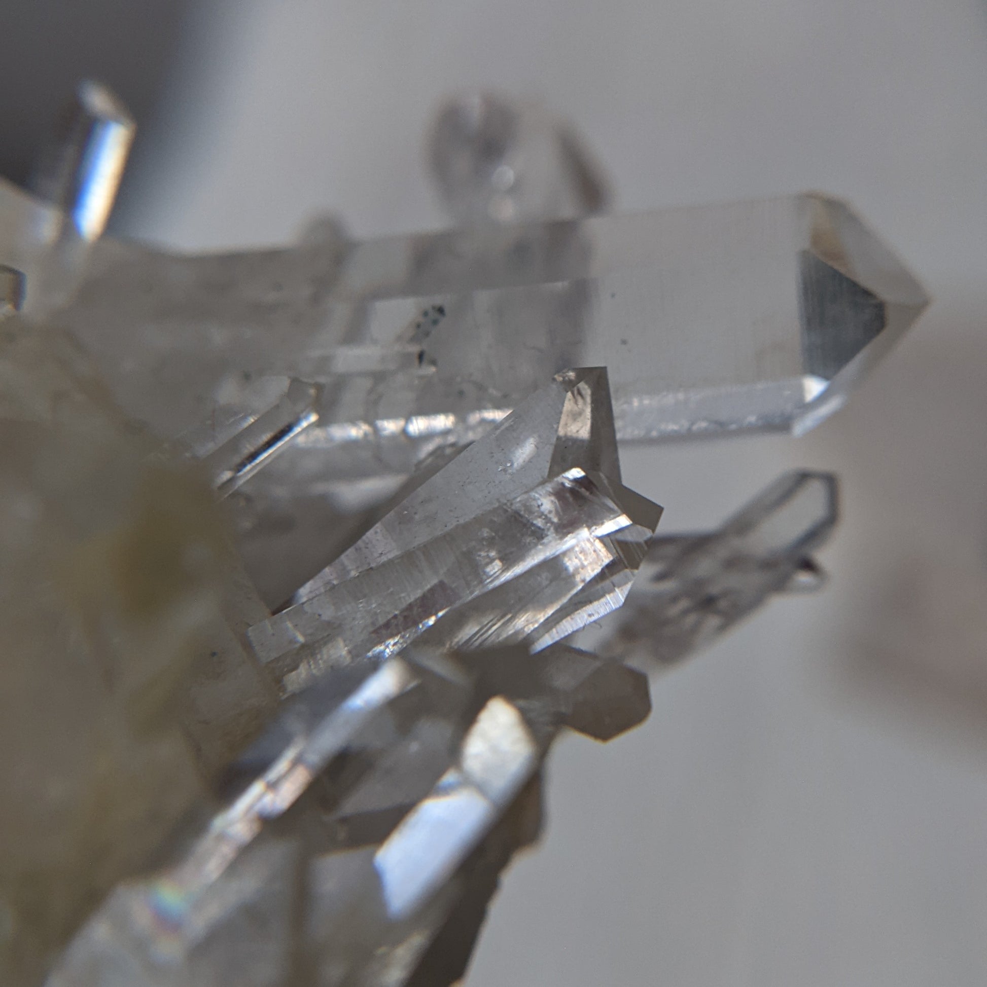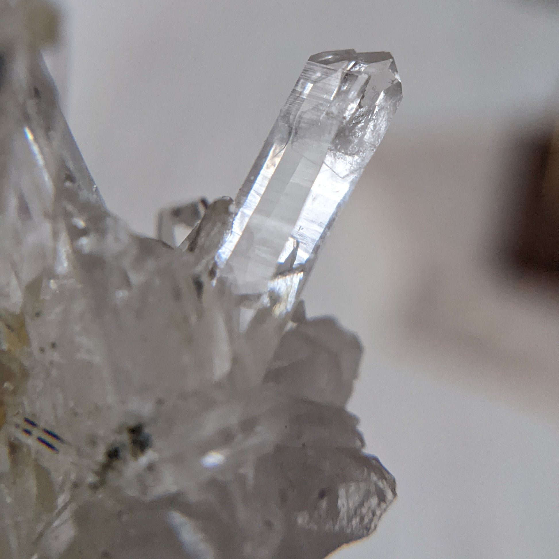 Rare Water Clear Green Lemurian Cluster Premium Grade with Clinochlore inclusion (Golden Healer)