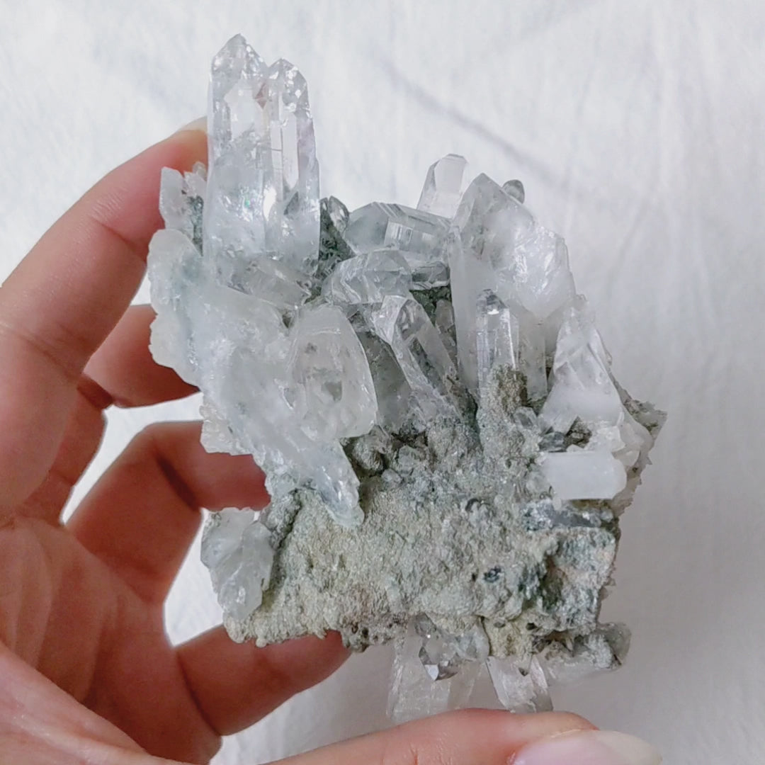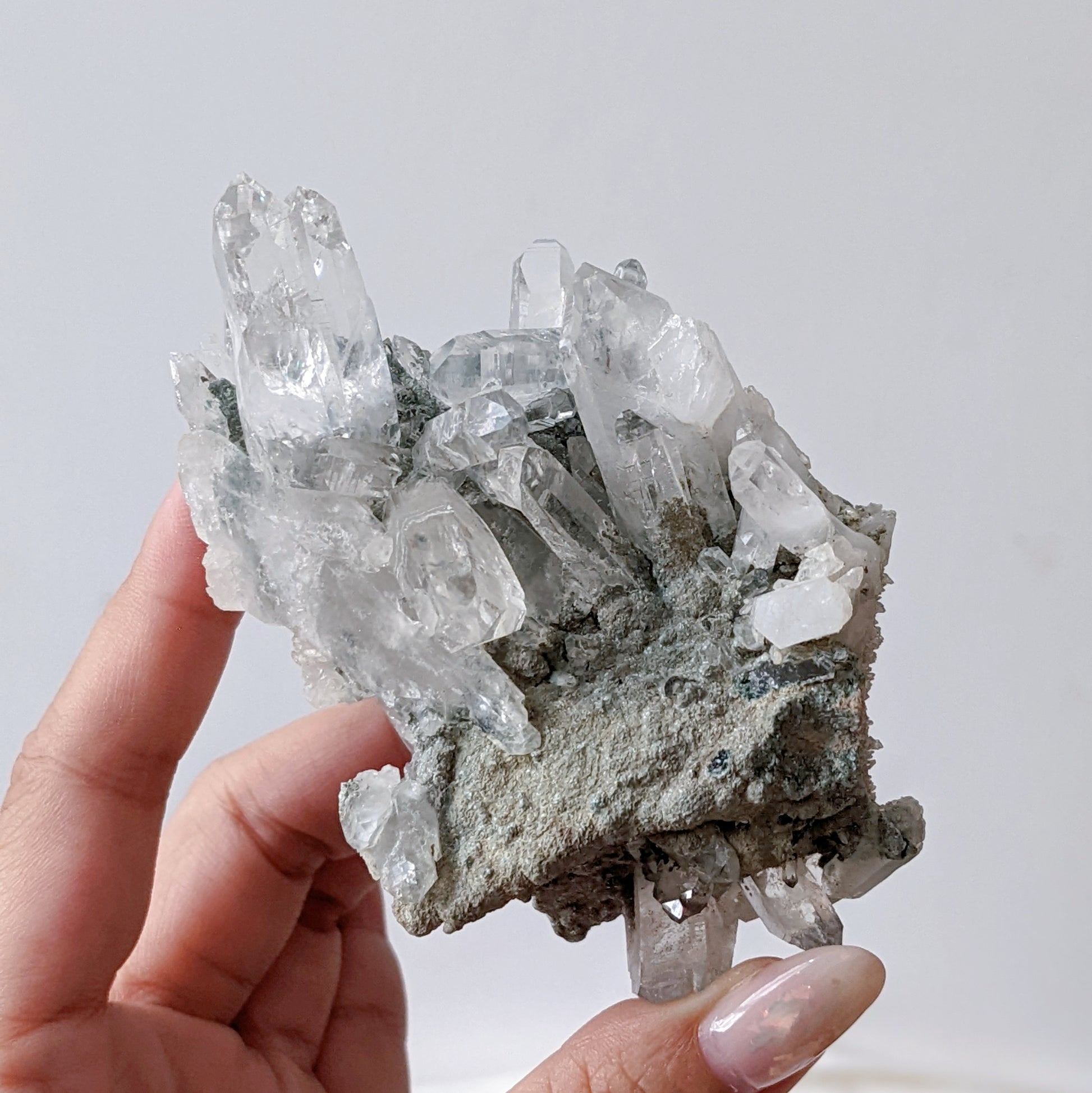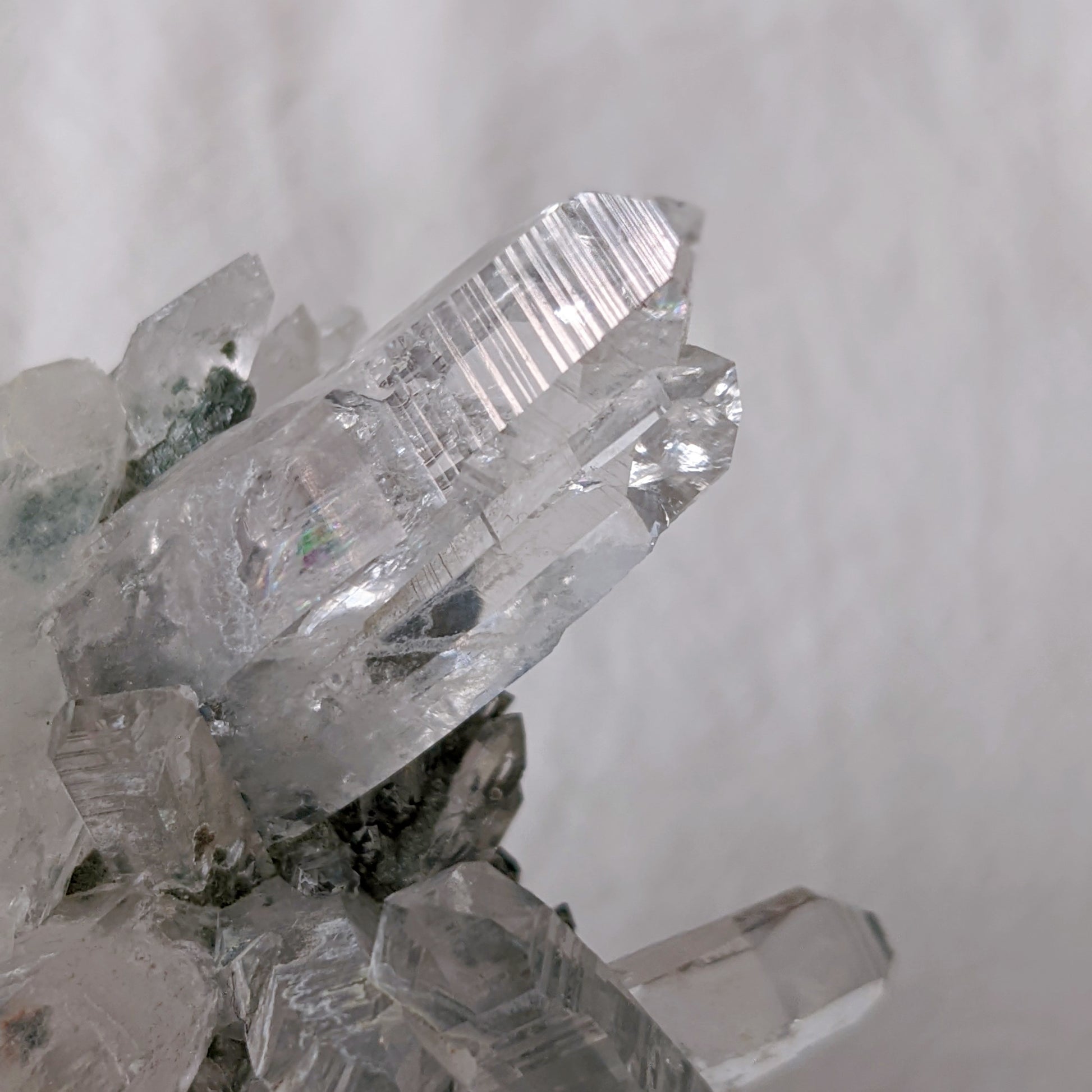 Rare Water Clear Green Lemurian Cluster Premium Grade with Clinochlore inclusion