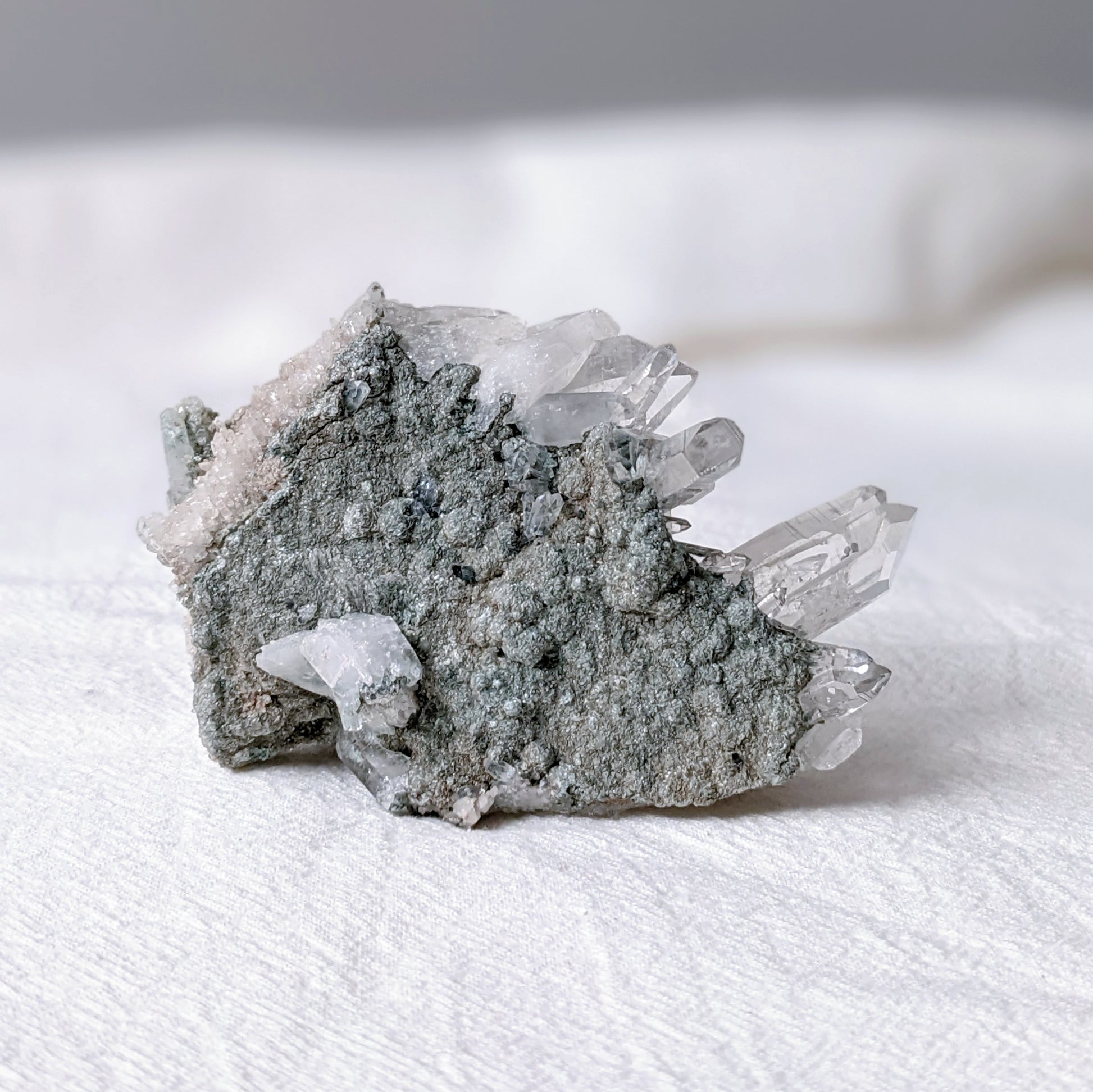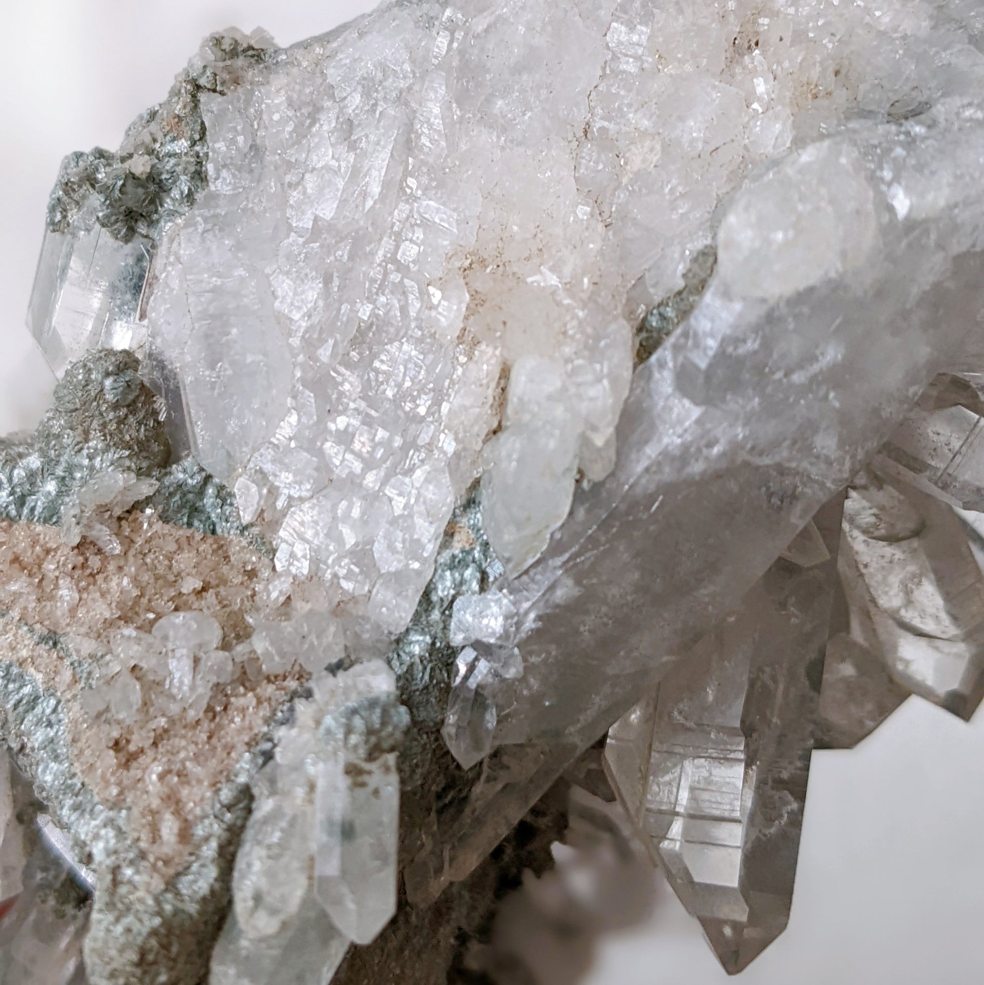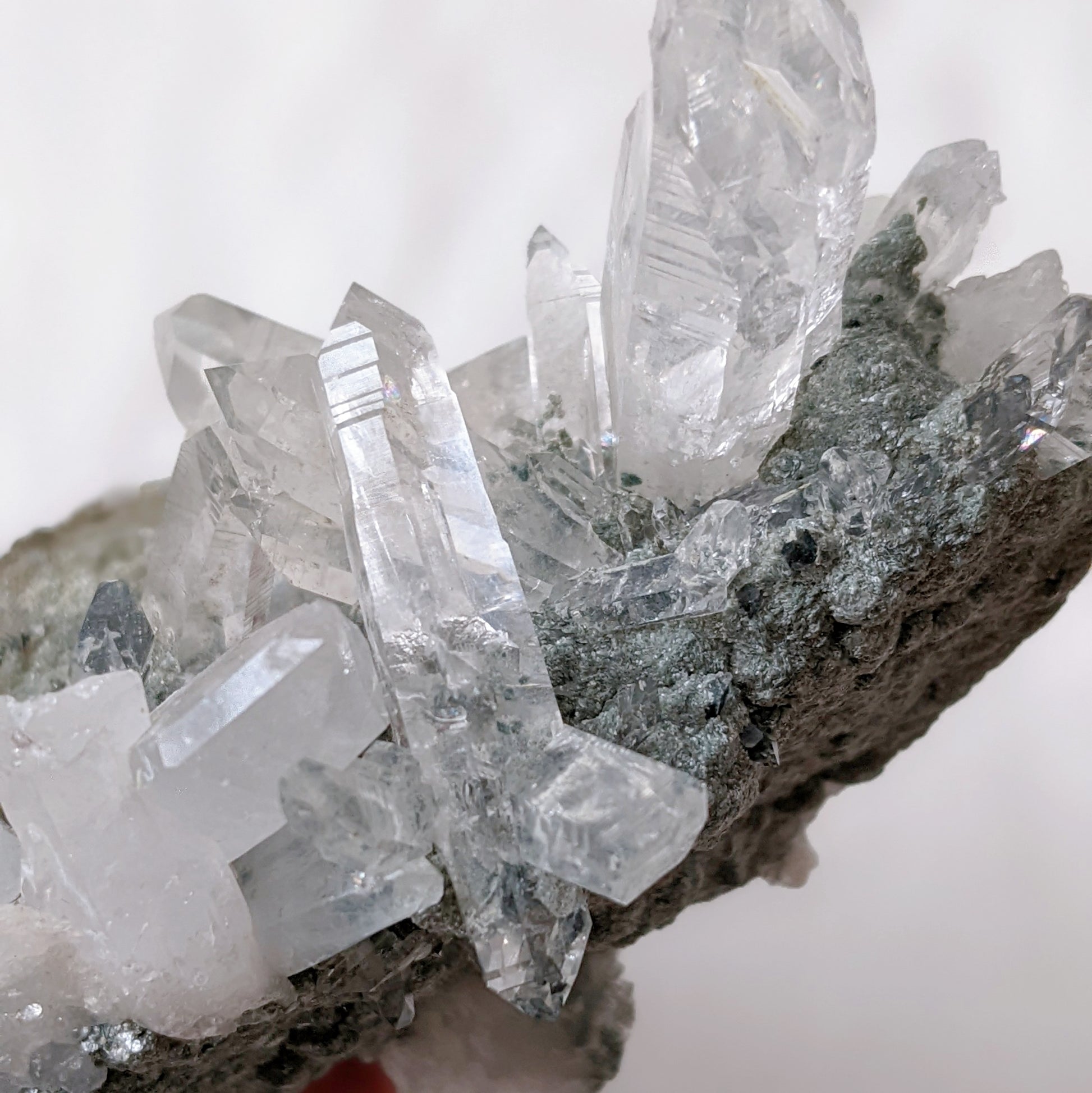 Rare Water Clear Green Lemurian Cluster Premium Grade with Clinochlore inclusion