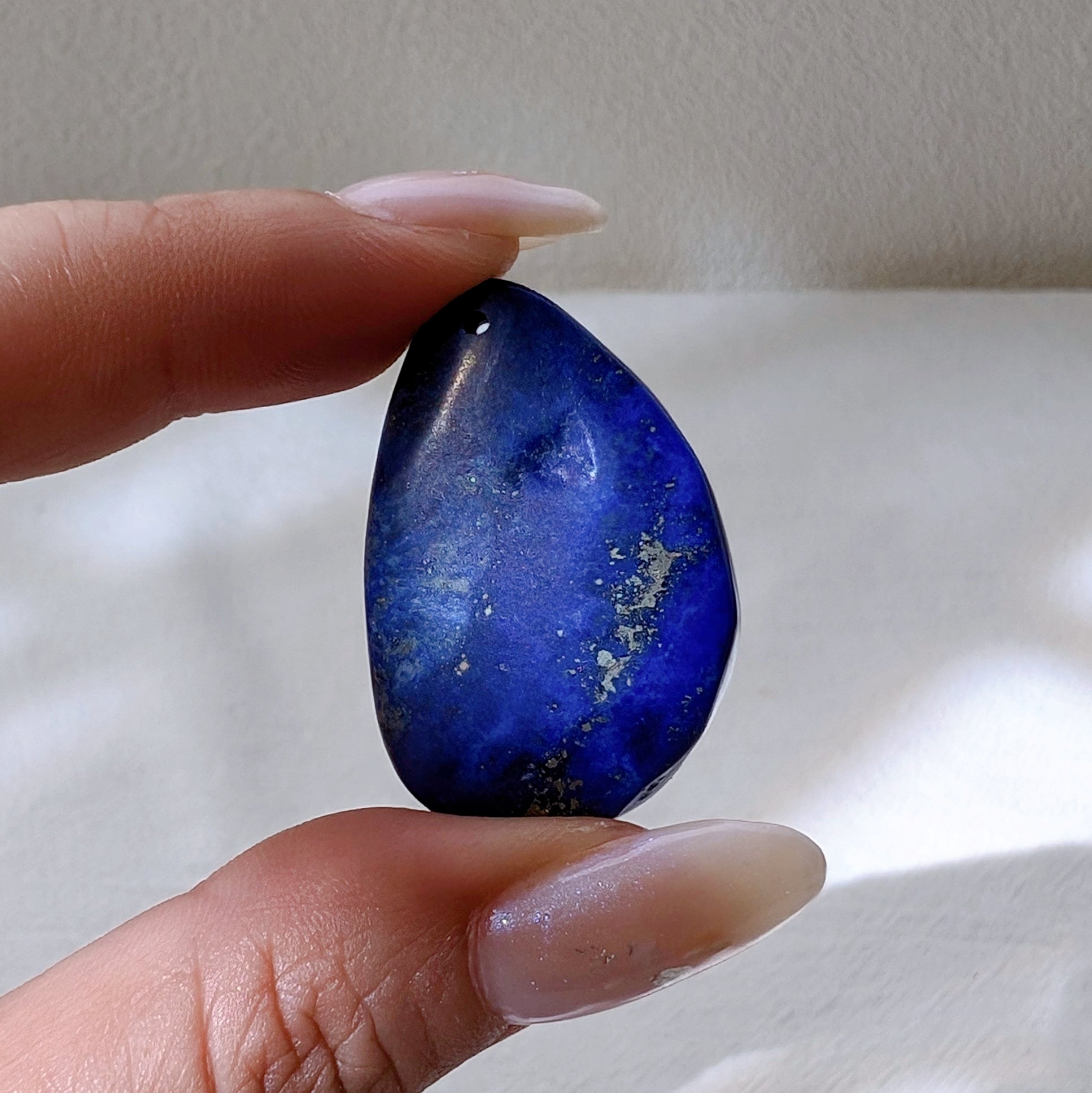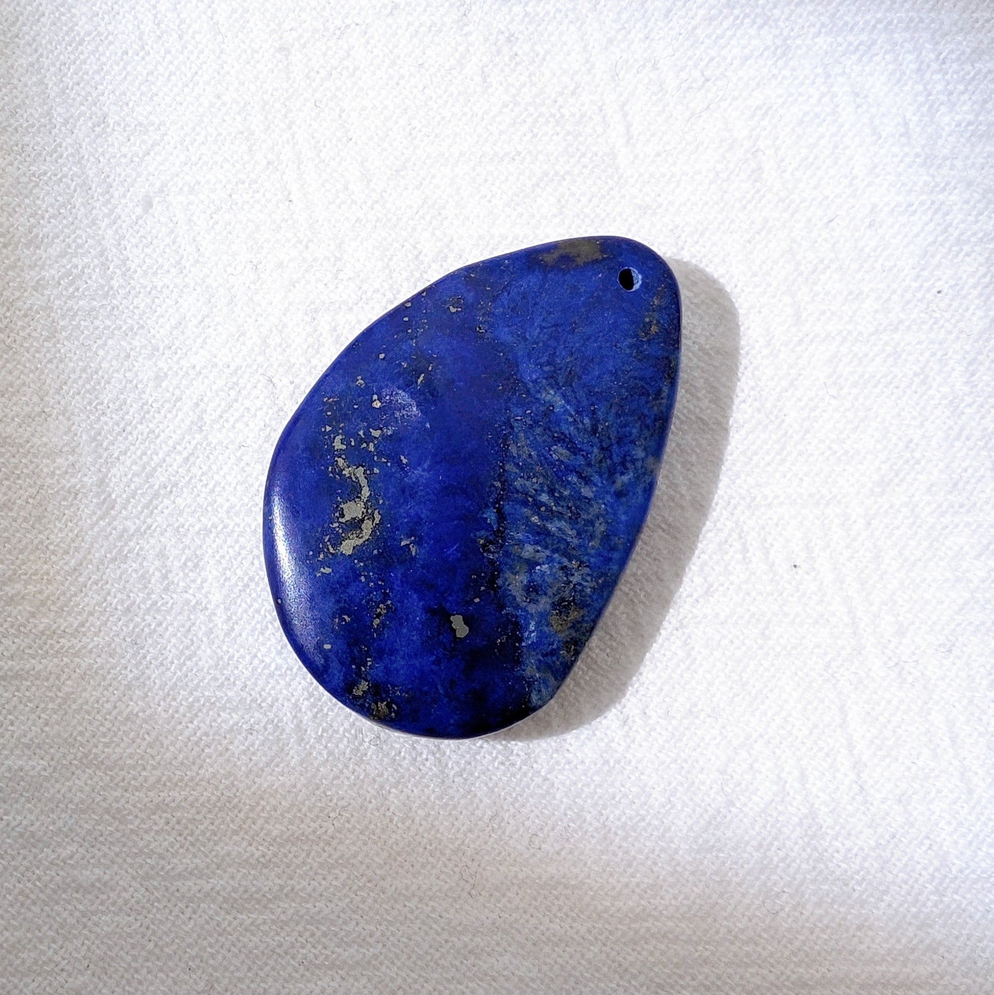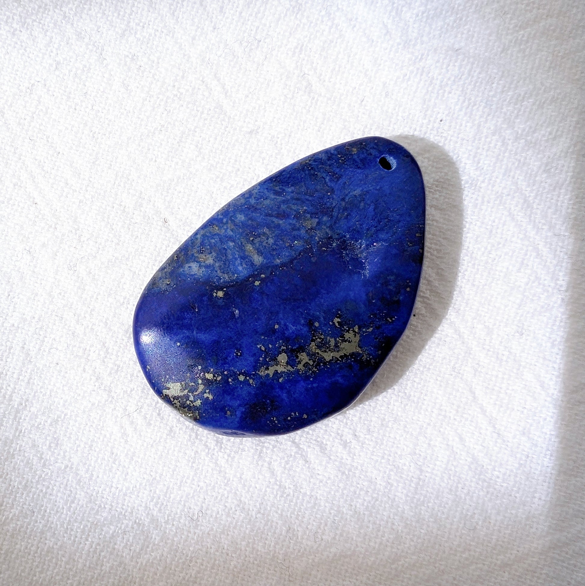 紫藍青金石吊嘴 (已打孔),少金少白質料油潤,花紋像星河,表面帶幾處天然小礦坑。