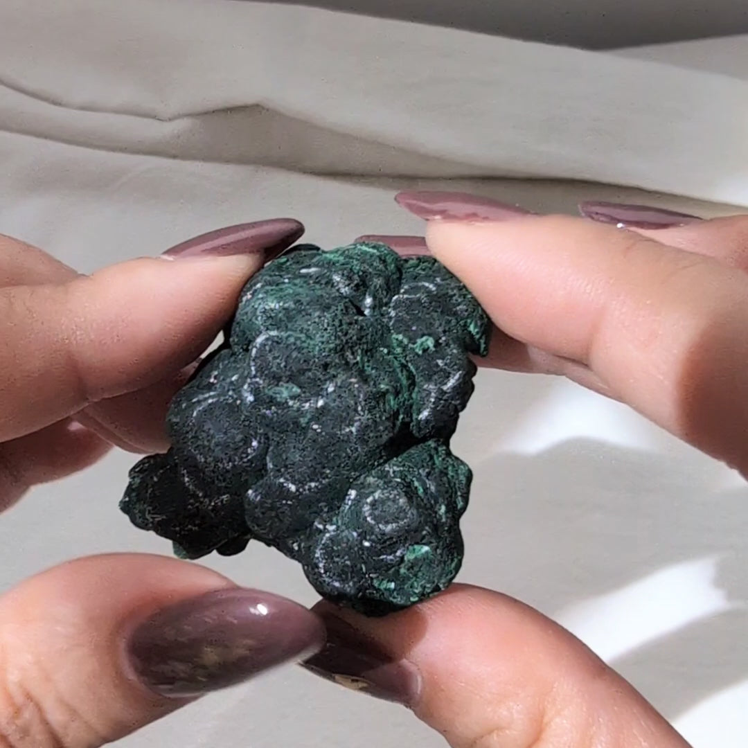 **Malachite is toxic when it gets moist because of its high copper content, avoid placing rough Malachite on your facial area, and never use it to make Crystal water. You can place the stone on your body with a small cloth underneath. **