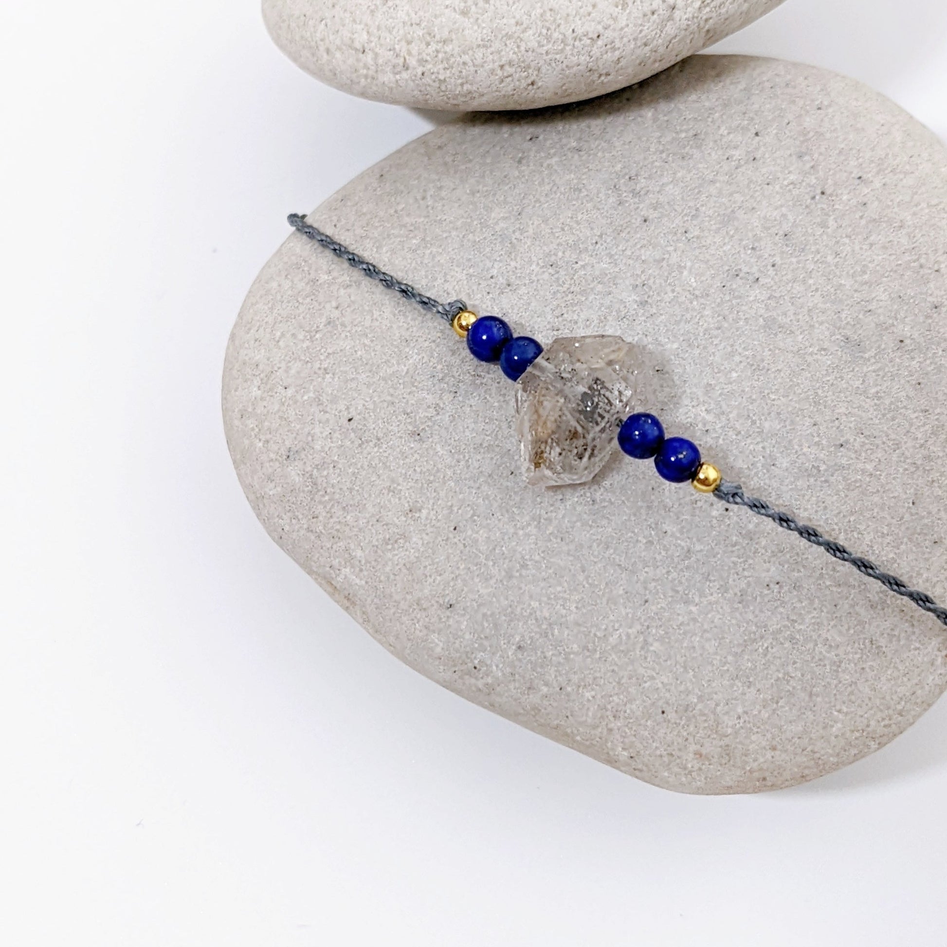 Lapis Lazuli & Herkimer Diamond Bracelet 高品豔藍青金石閃靈鑽手繩
