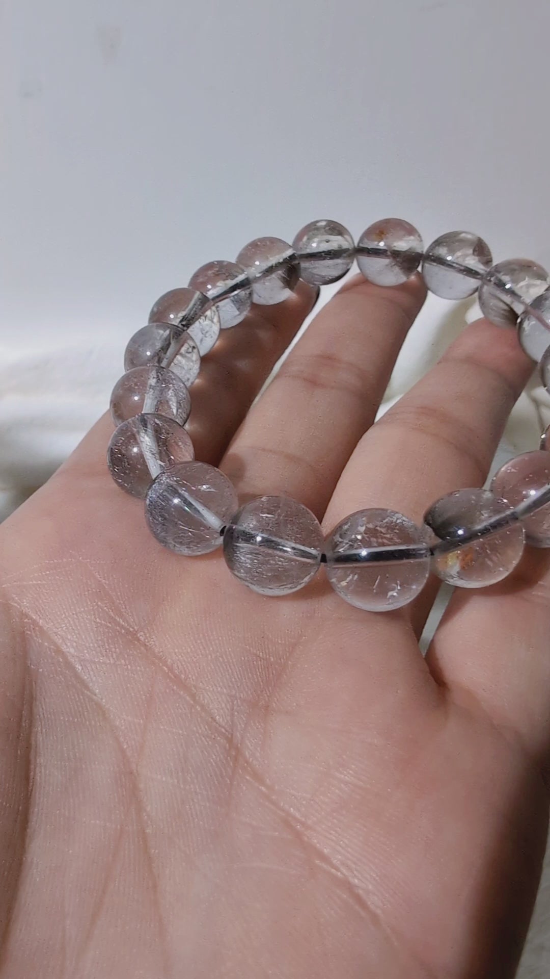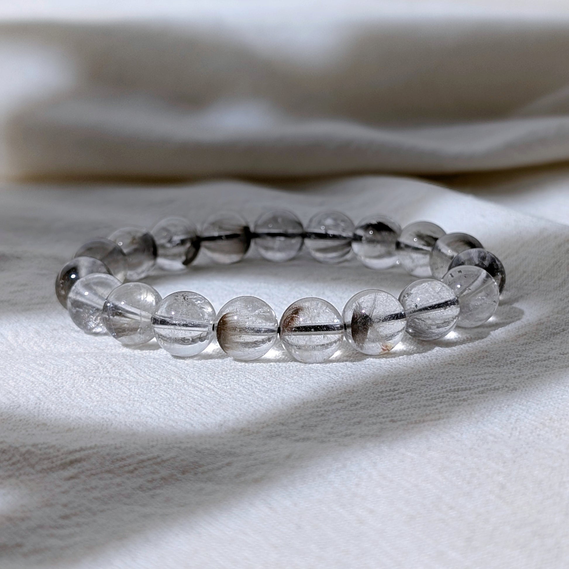 Brookite and Rutile in Quartz Beaded Bracelet • 密礦清晶黑銀鈦手串(少量膠花共生)
