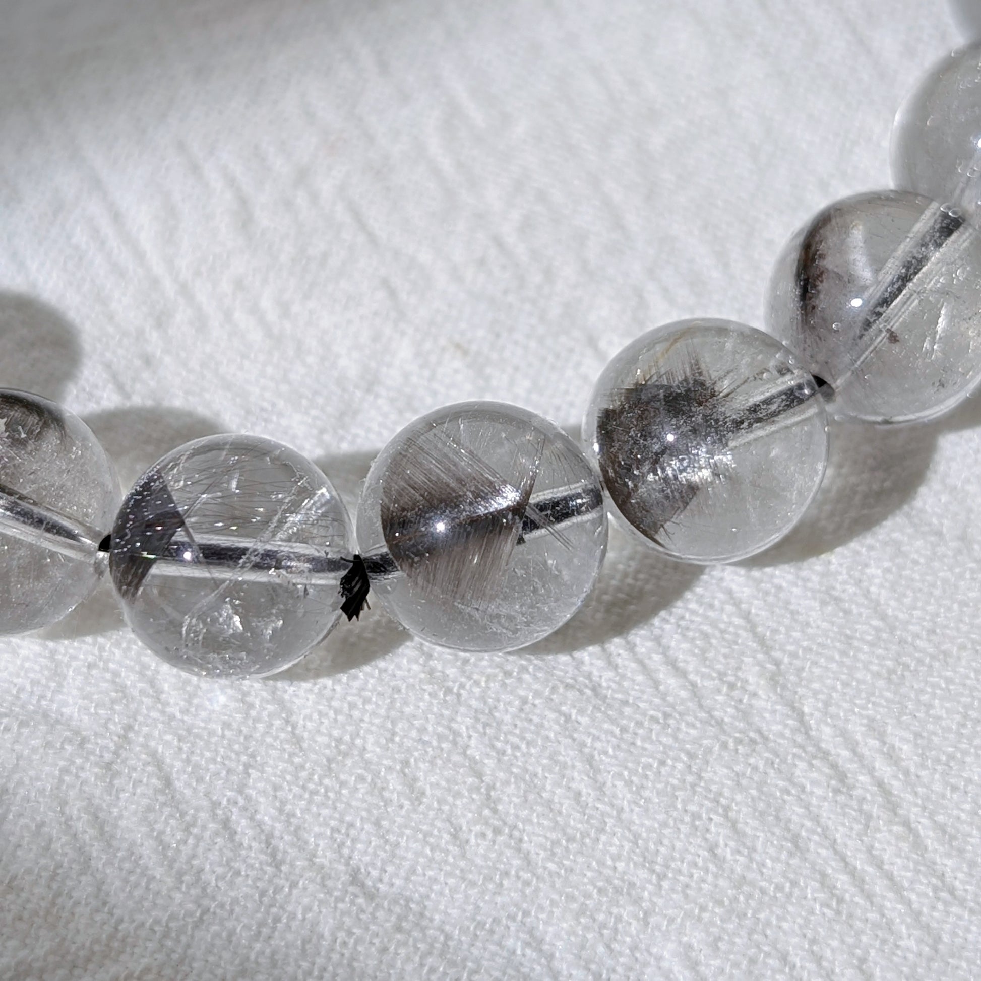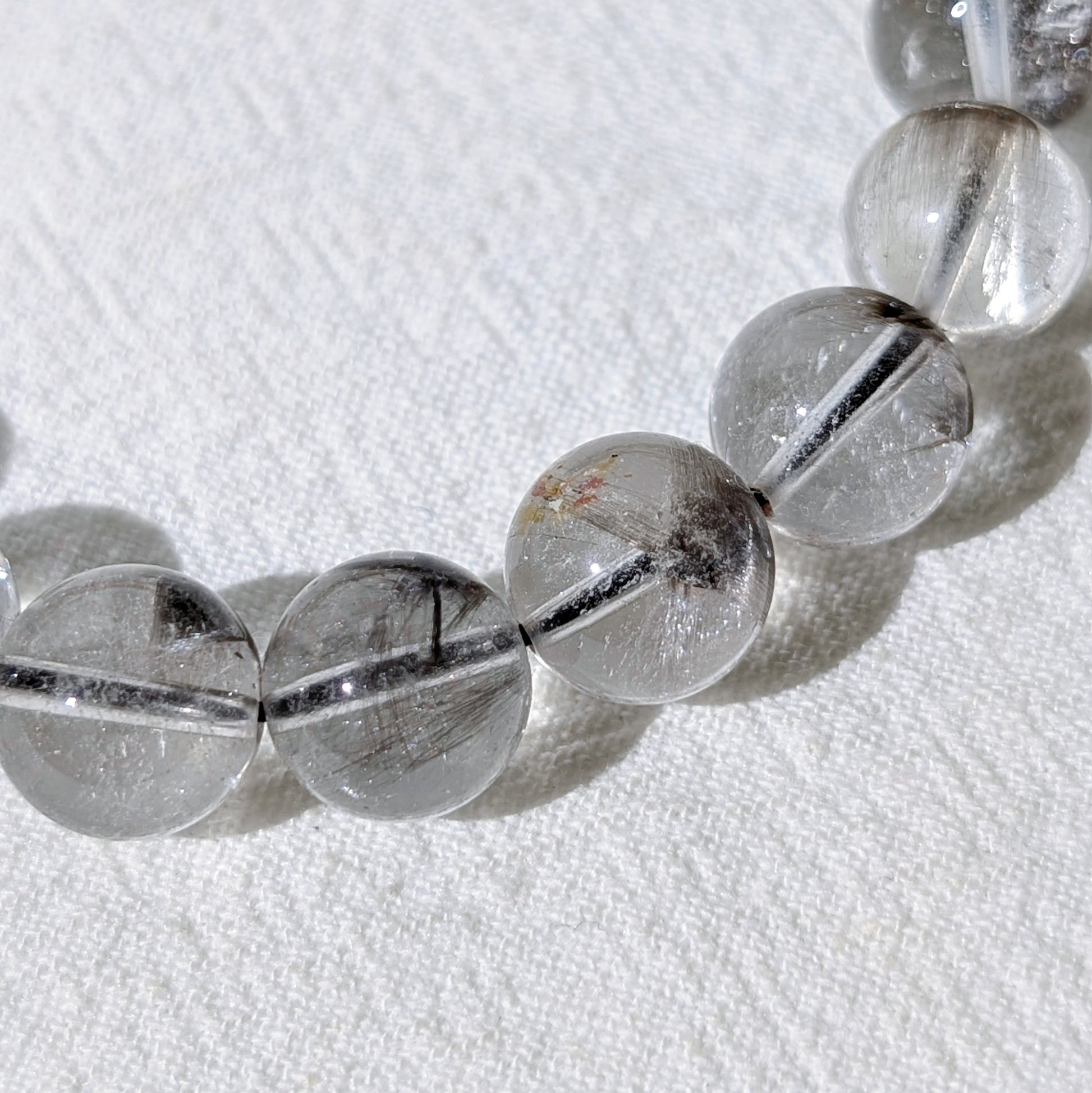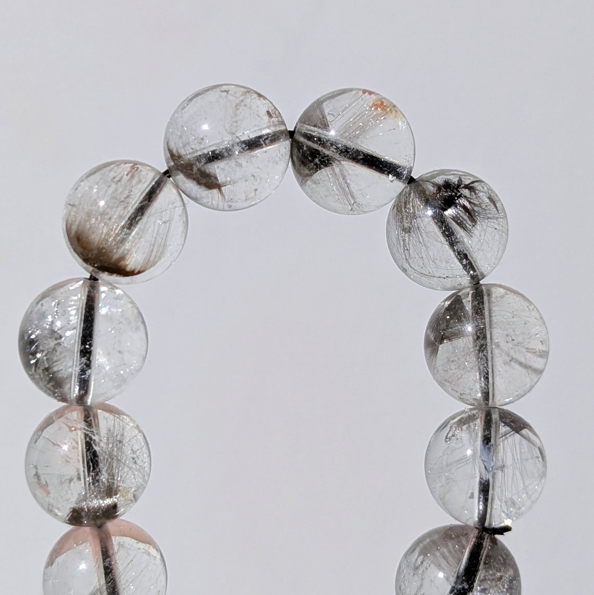 [MBBK03] Brookite and Rutile in Quartz Beaded Bracelet 黑銀鈦手串 10+mm