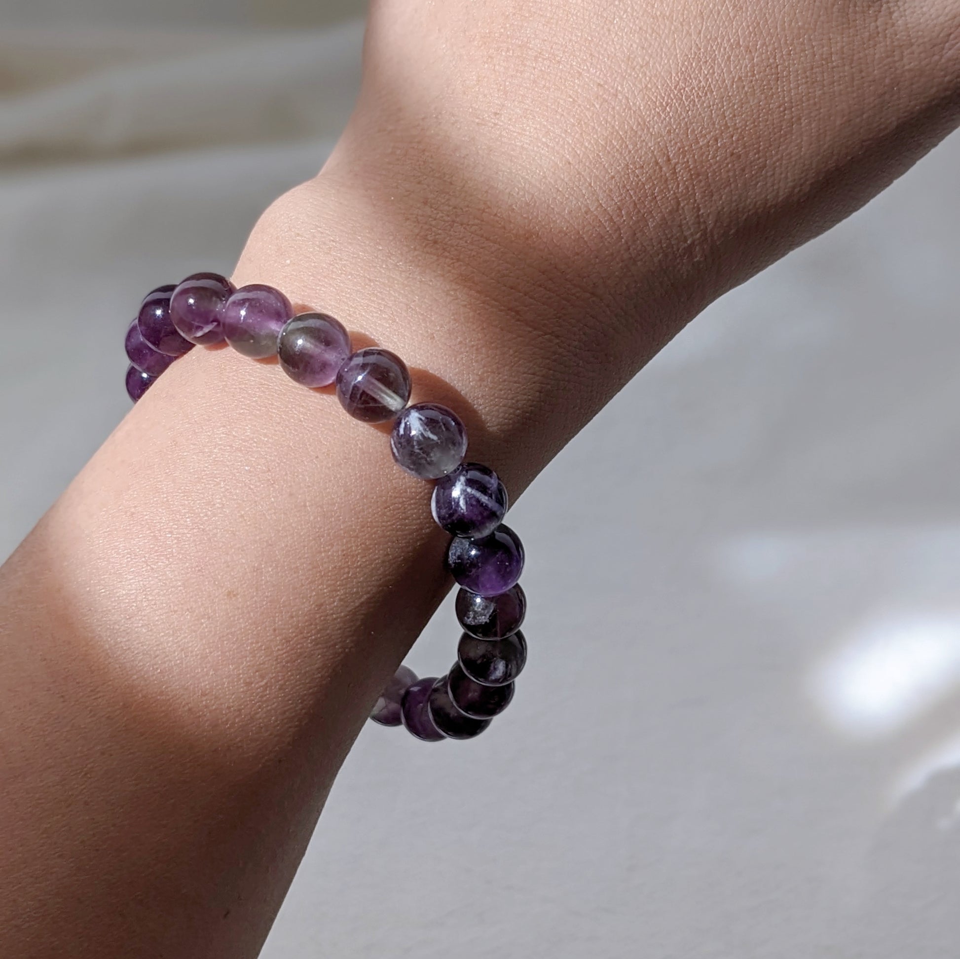 Purple Fluorite Beaded Bracelet 紫羽毛螢石手串