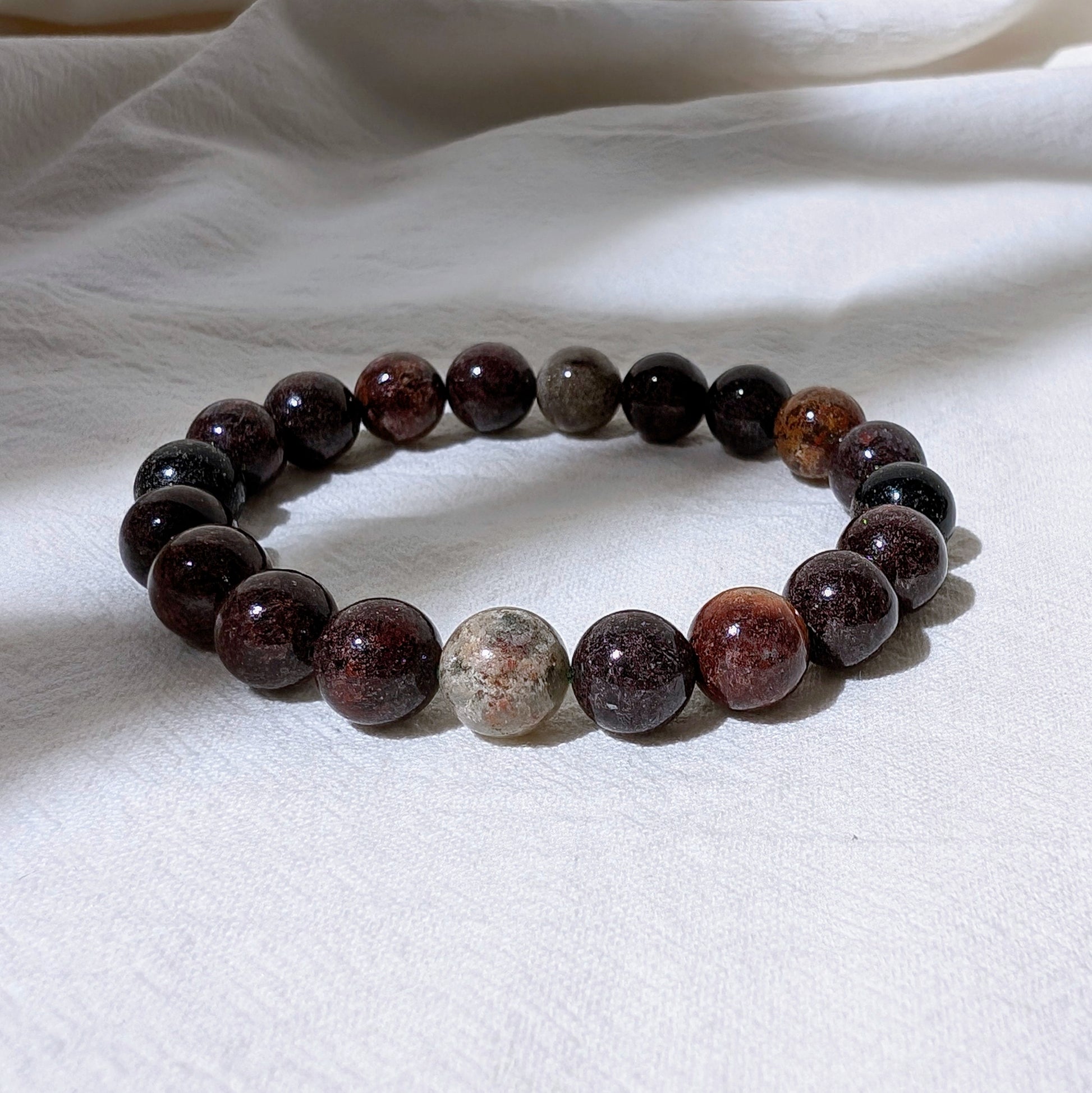 [MBLD07] Red White Lodolite Beaded Bracelet 滿盆紅白幽靈手串 10mm
