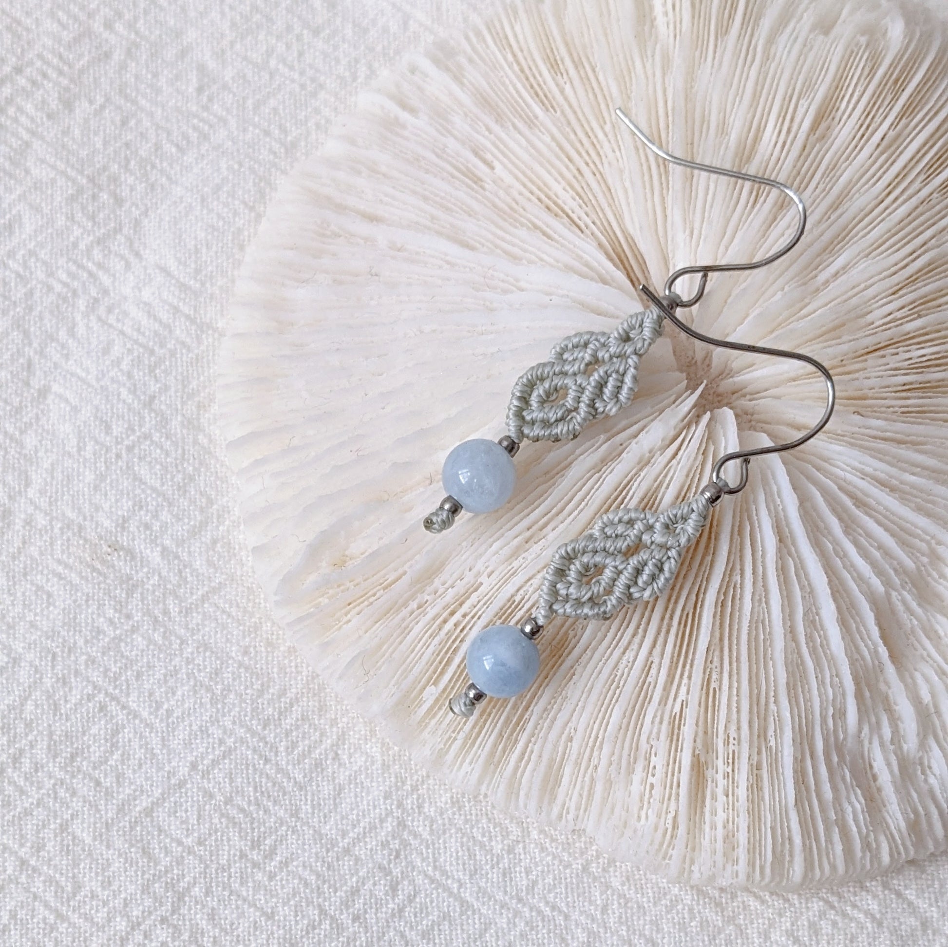 Aquamarine Macrame Earrings 海藍寶編繩耳環