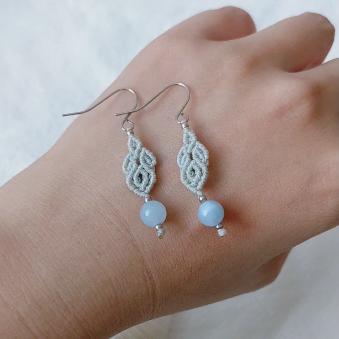[MEAQ01] Aquamarine Macrame Earrings 海藍寶編織耳環