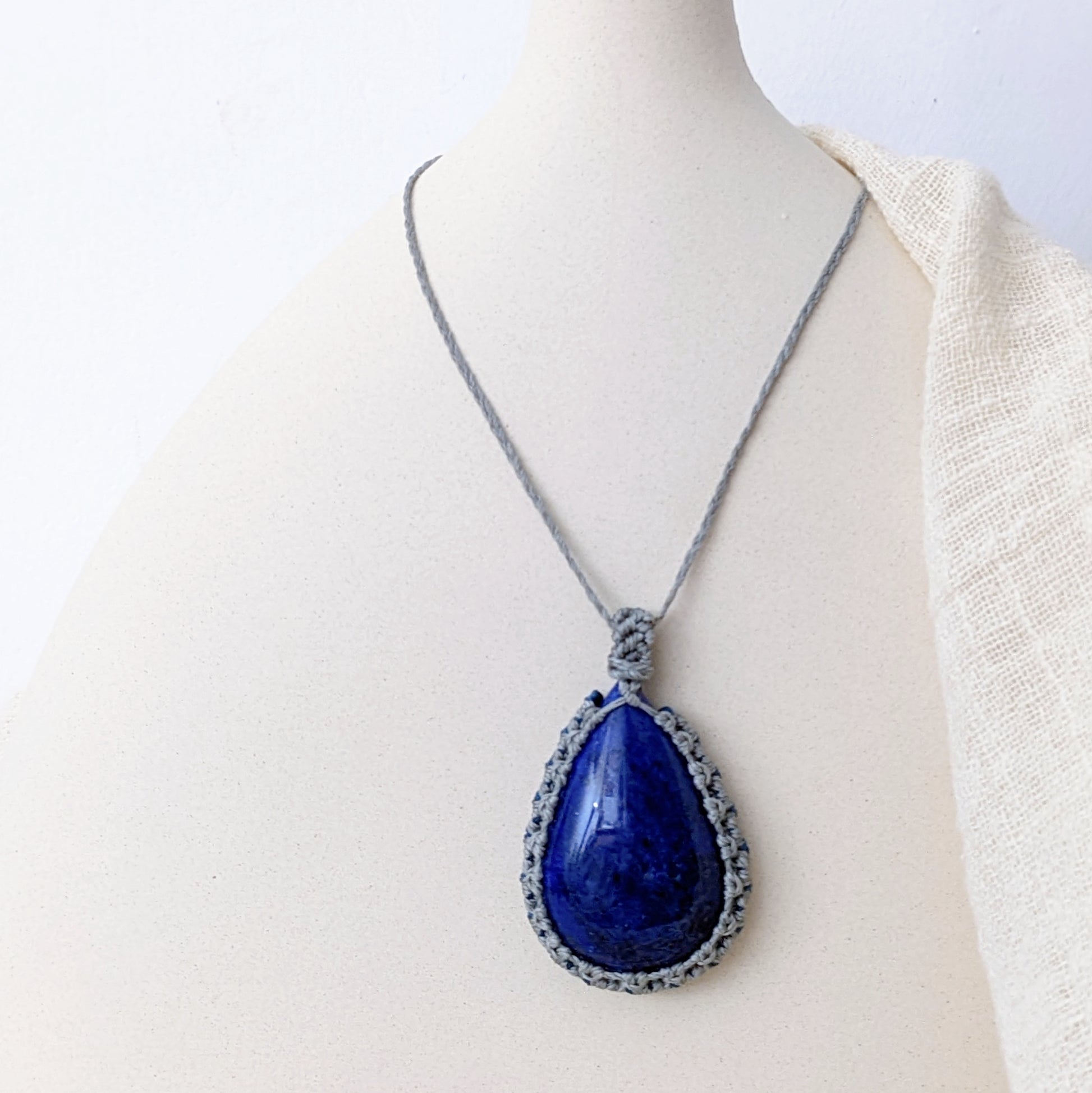 Lapis Lazuli Pendant Macrame Long Necklace 青金石吊咀編織長頸鍊