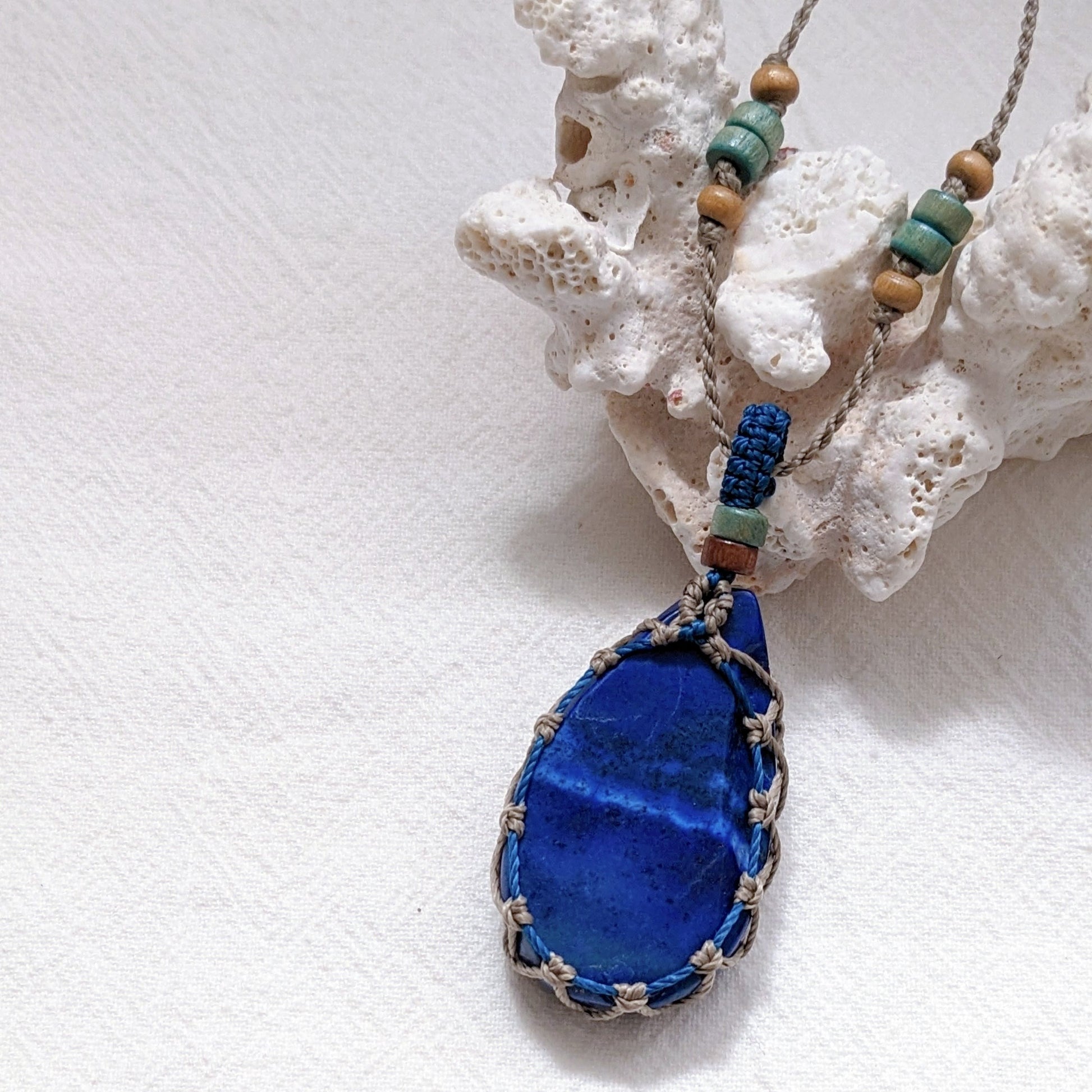 [MMLL05] Lapis Lazuli Pendant Macrame Long Necklace 青金石吊咀編織長頸鍊
