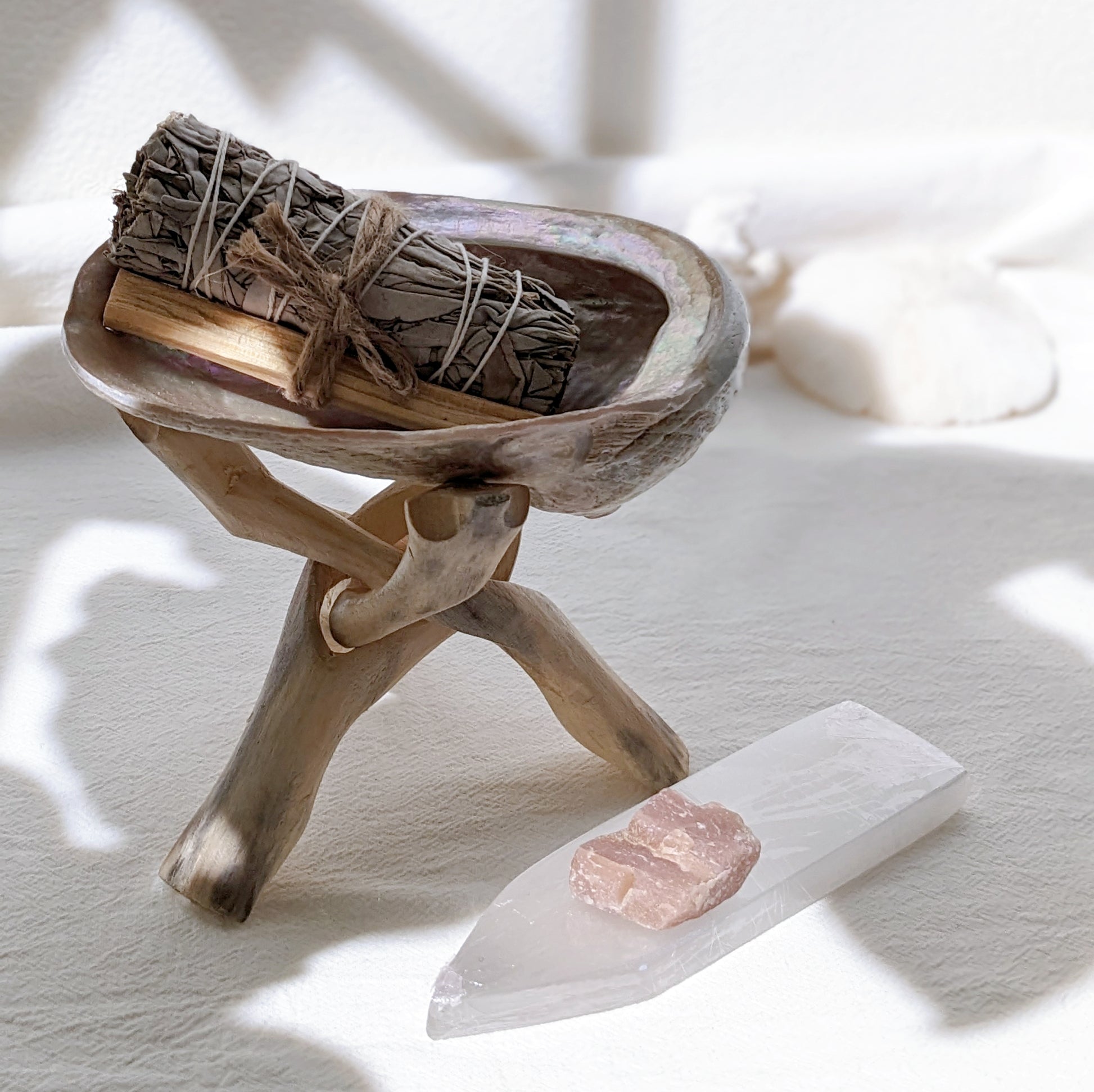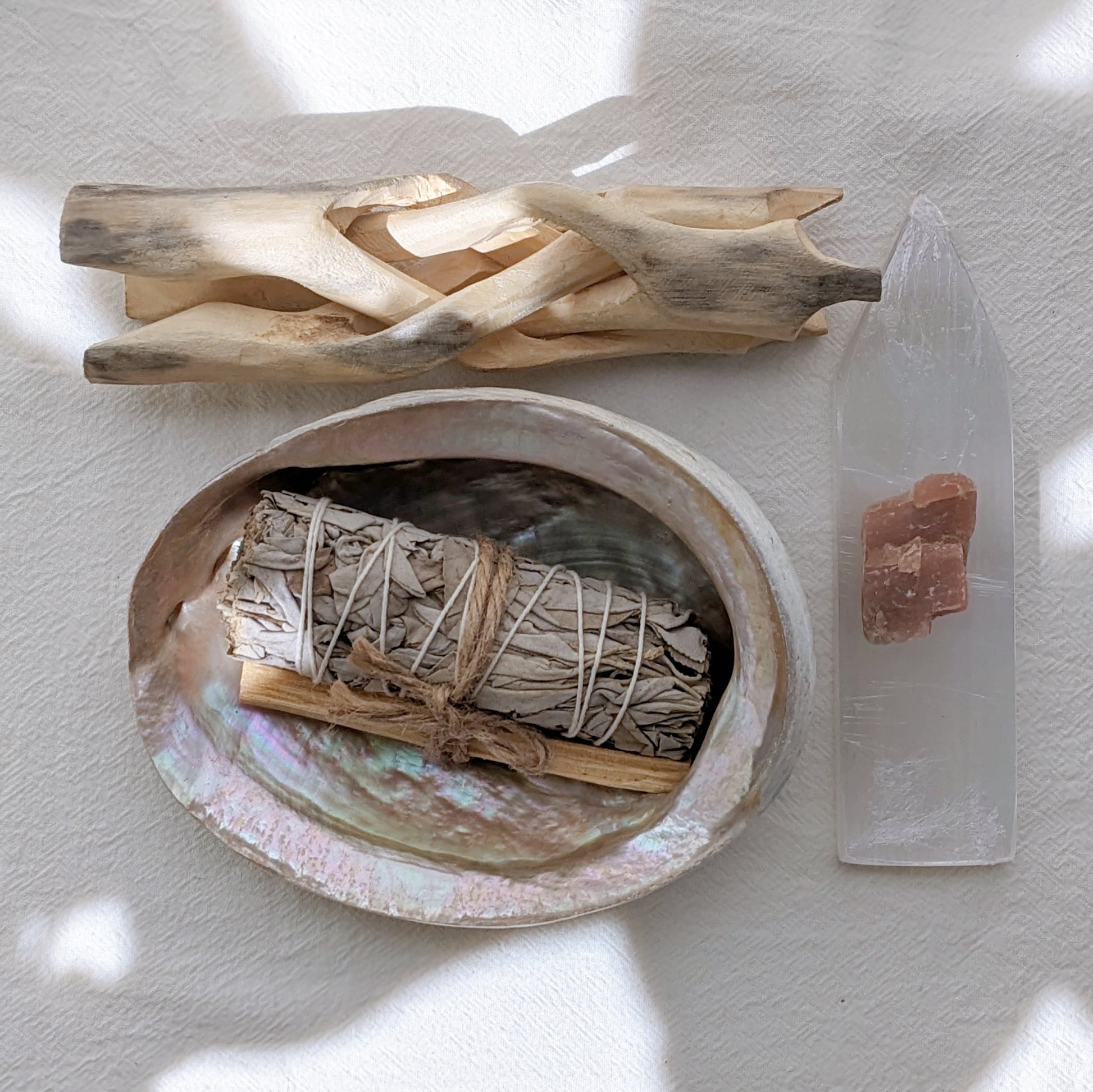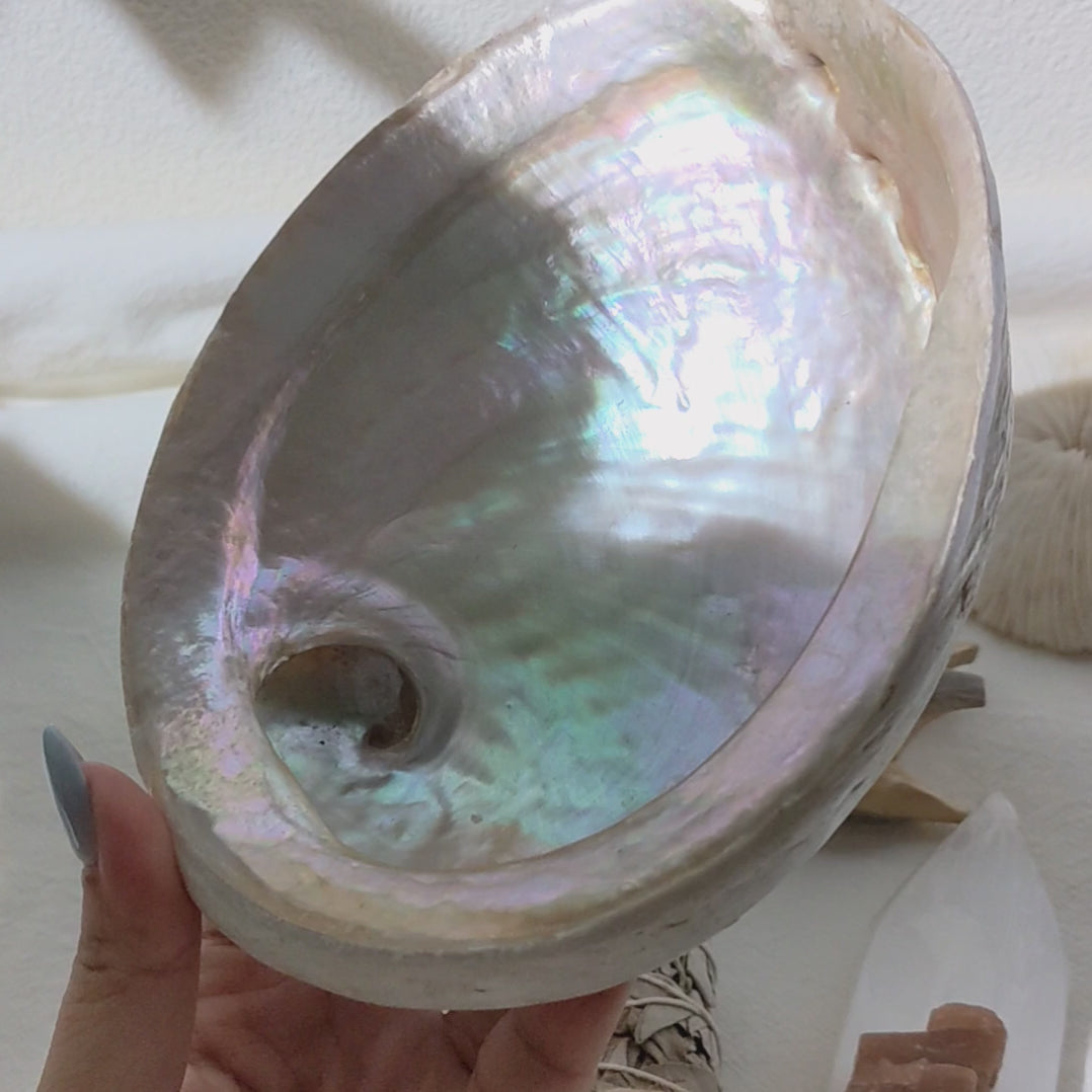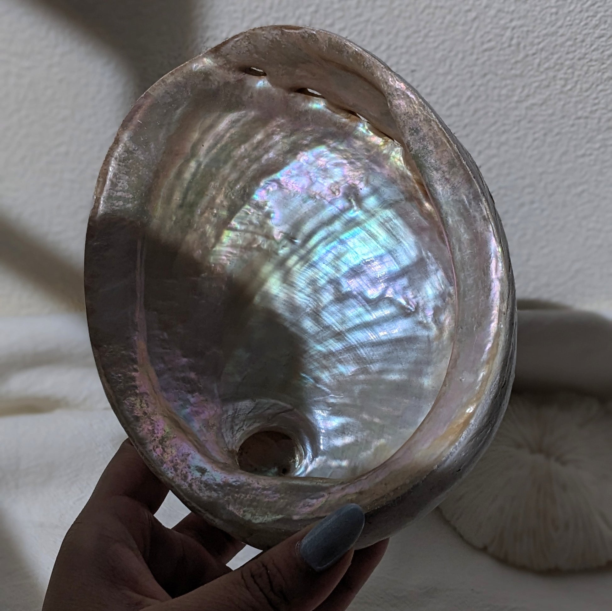 Smudging with the abalone shell can bring clear energy into a space with the combination of the 4 elemental energies: