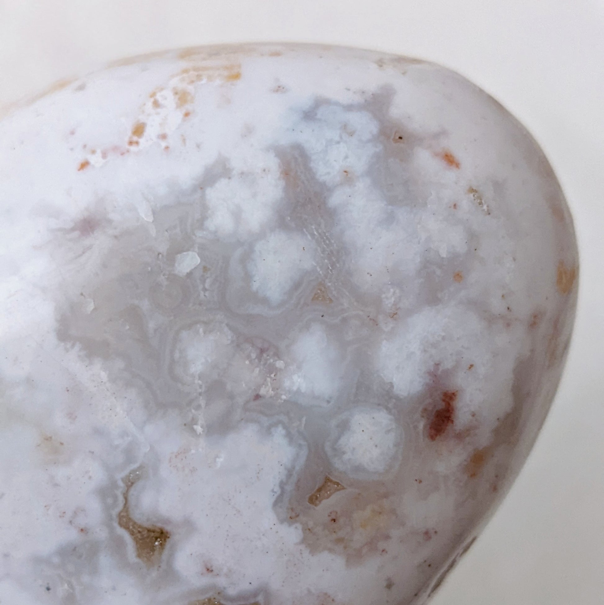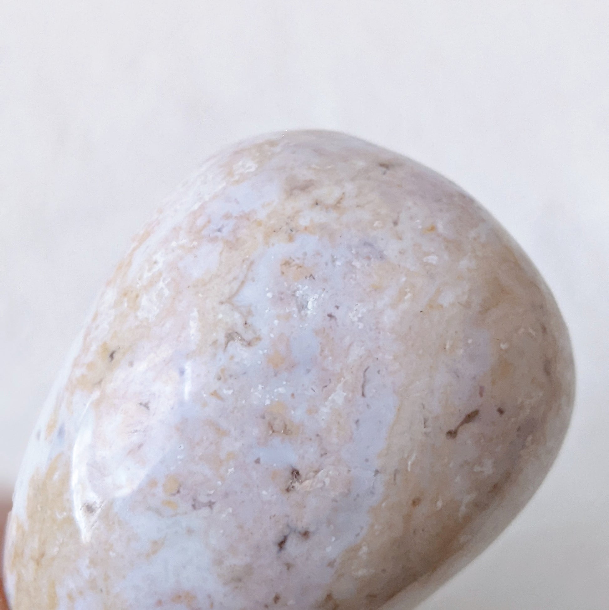 Pastel color Ocean Jasper palmstone, some parts is crystalized and half of it is Flower Agate.
