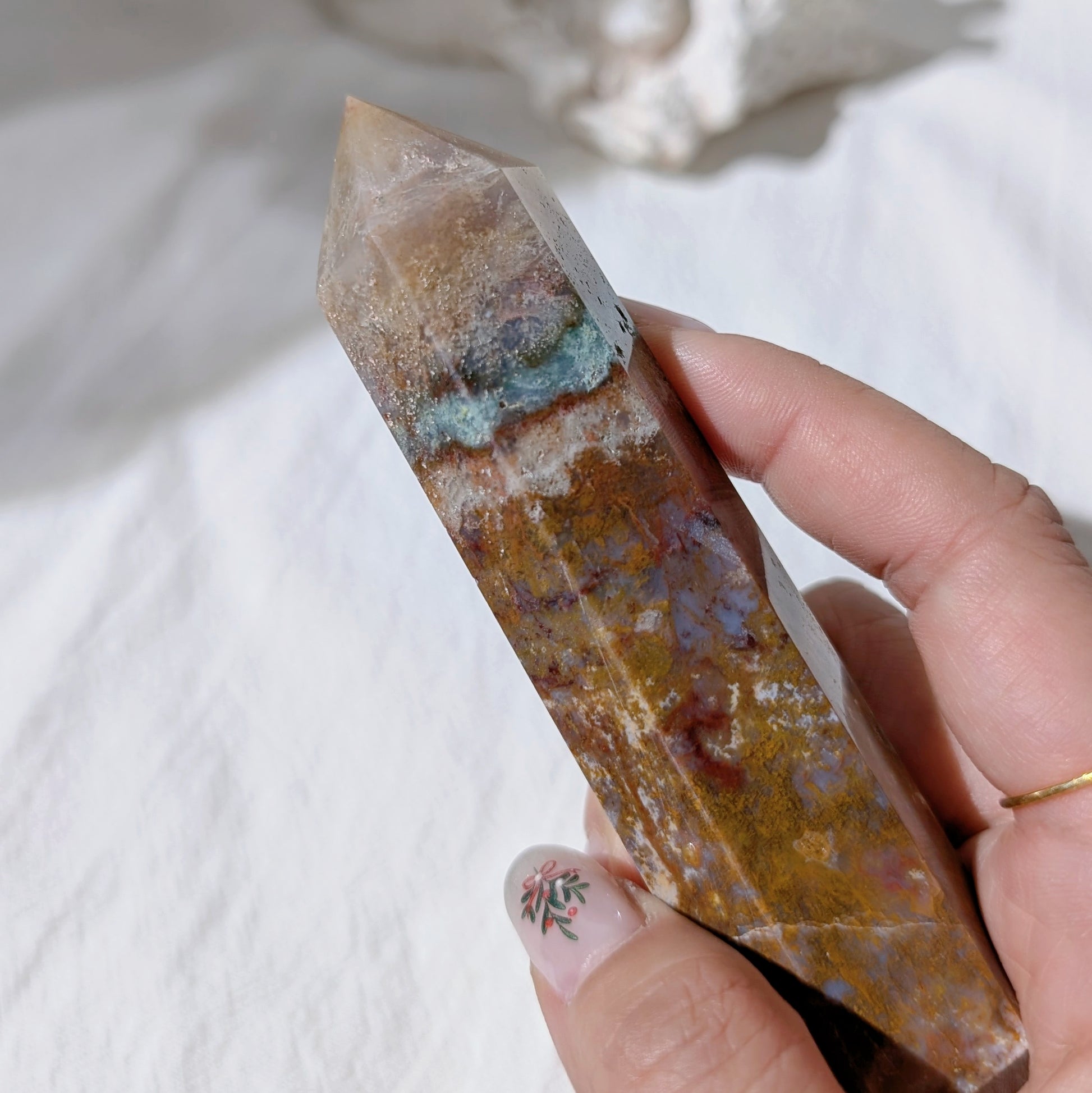 顏色像幅畫的海洋碧玉可說是一種多功能石。它主要對應我們的心輪,也可以幫助太陽神經叢及底輪令我們更接地氣。若你感到失落或不開心,碧玉可以安撫你的心輪給你帶來溫暖,是很溫柔但很有能量的石頭。碧玉可以療癒我們舊有的深藏的傷痕。它是令人愉快及更能發揮創意的,很適合從事創意行業的人。它還可以幫助我們的消化系統更易吸收所需的養份。如你想要平靜及輕鬆的能量或跟大地母親更連接,碧玉是一個很好的選擇呢!