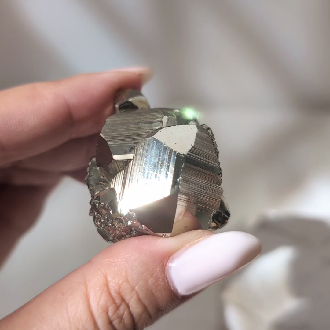 黃鐵礦是能帶來豐盛及財富的礦石。它能清理我們頂輪的能量阻塞,也可以激活頂輪。如果你跟它有較強的感應可以試試拿它做冥想,它會幫助我們到達更深層的意識。
