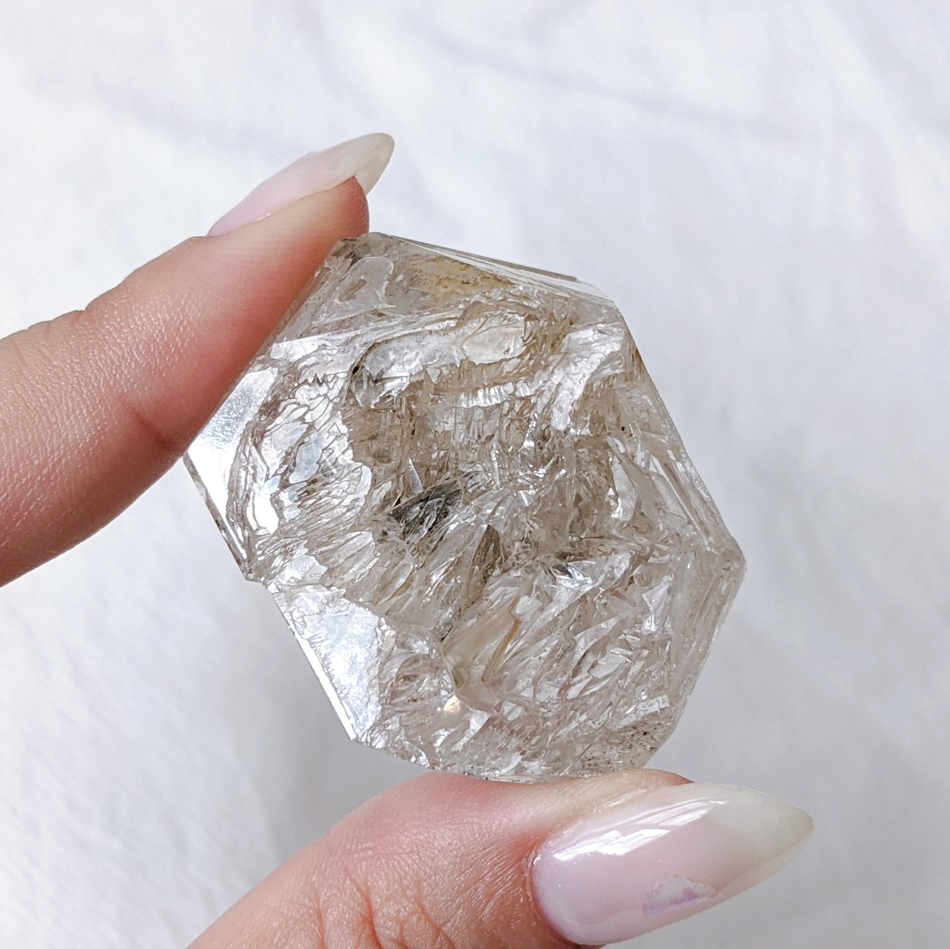 這顆骸骨水晶是小精品,形很美像小花朵,有很多層次,晶體透亮且帶開窗,能清楚看到骸骨水晶裏的層層layers,十分耐看。